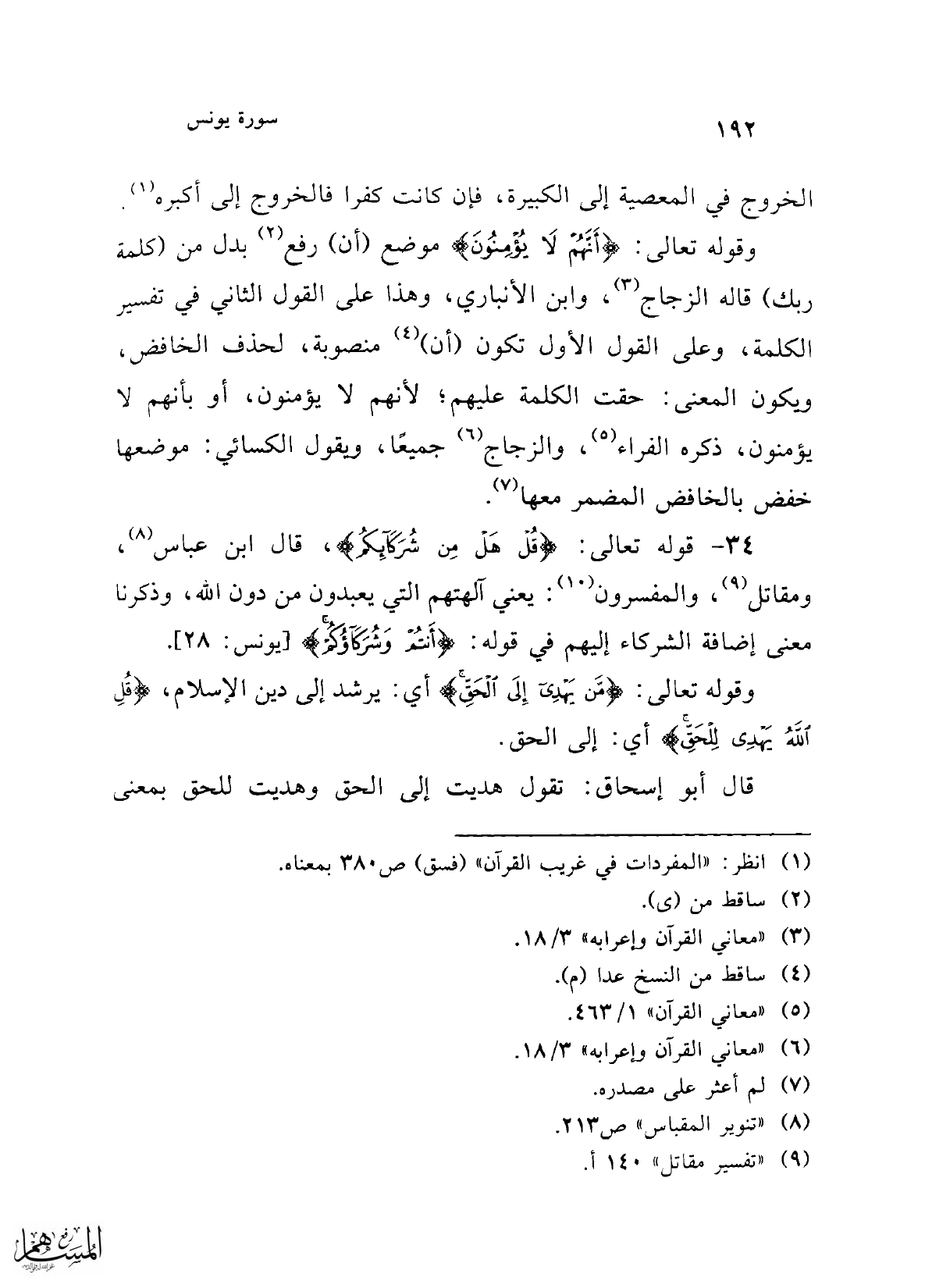 (¬10) "تفسير ابن جرير" 11/ 115، والسمرقندي 2/ 98، "الدر المنثور" 3/ 552.