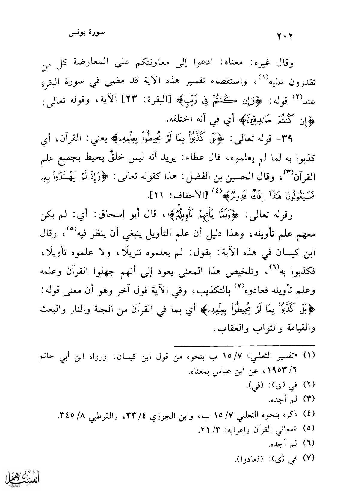 39 - قوله تعالى: {بَلْ كَذَّبُوا بِمَا لَمْ يُحِيطُوا بِعِلْمِهِ} يعني: القرآن، أي كذبوا به لما لم يعلموه، قال عطاء: يريد أنه ليس خلقٌ يحيط بجميع علم القرآن (¬3)، وقال الحسين بن الفضل: هذا كقوله تعالى: {وَإِذْ لَمْ يَهْتَدُوا بِهِ فَسَيَقُولُونَ هَذَا إِفْكٌ قَدِيمٌ} (¬4) [الأحقاف: 11].