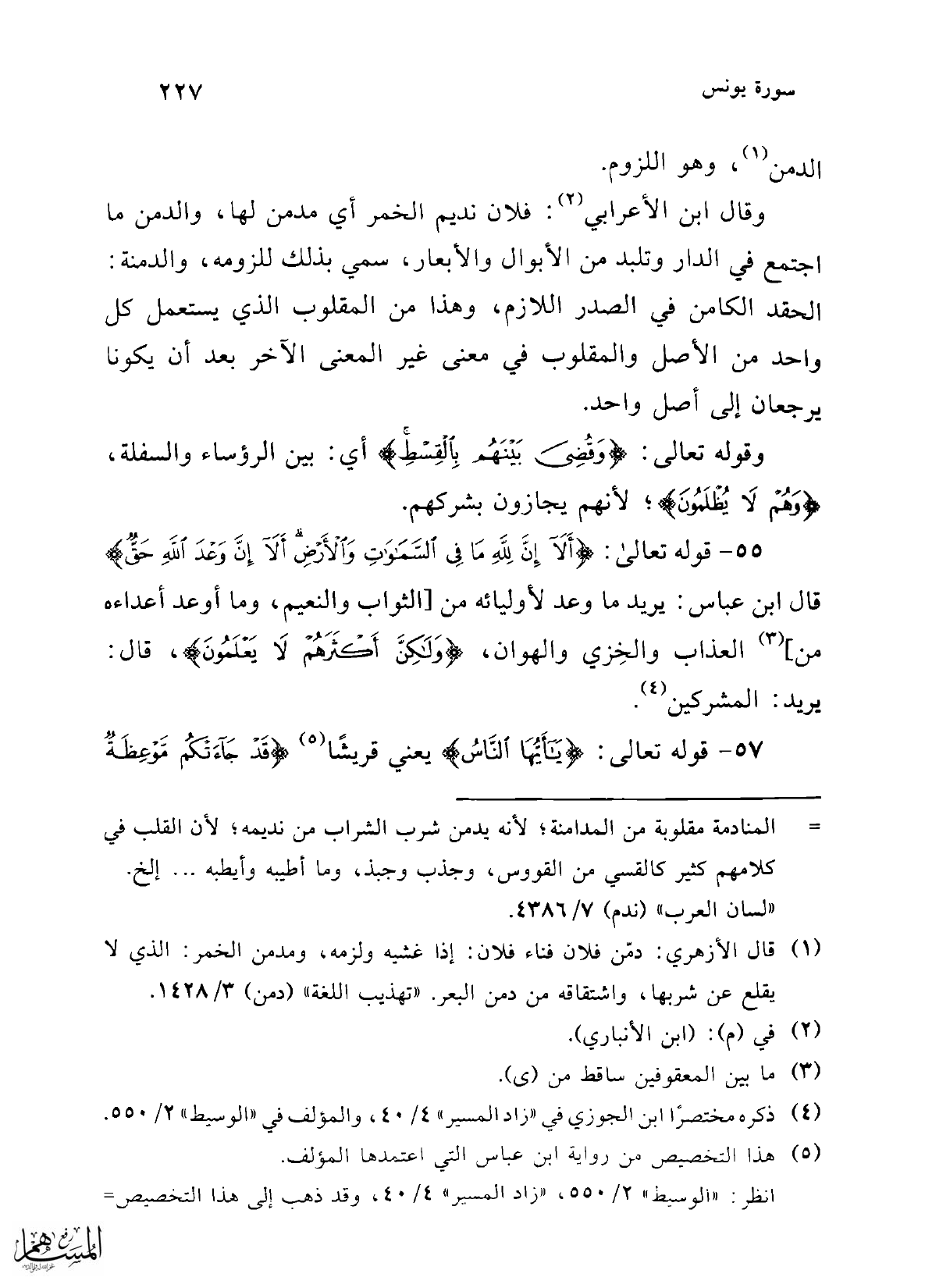 (¬5) هذا التخصيص من رواية ابن عباس التي اعتمدها المؤلف. انظر: "الوسيط" 2/ 550، "زاد المسير" 4/ 40، وقد ذهب إلى هذا التخصيص =
