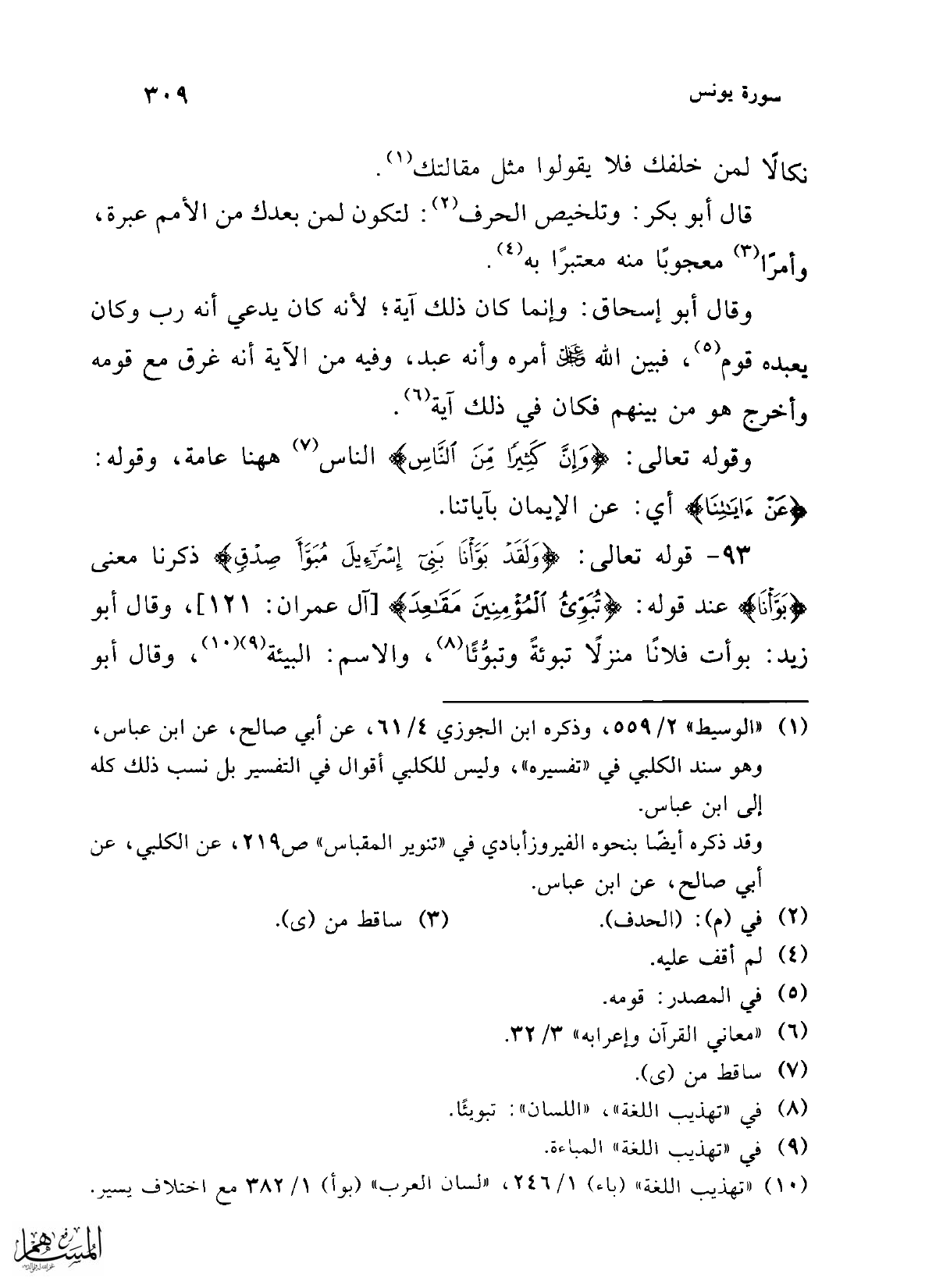 (¬10) "تهذيب اللغة" (باء) 1/ 246، "لسان العرب" (بوأ) 1/ 382 هع اختلاف يسير.