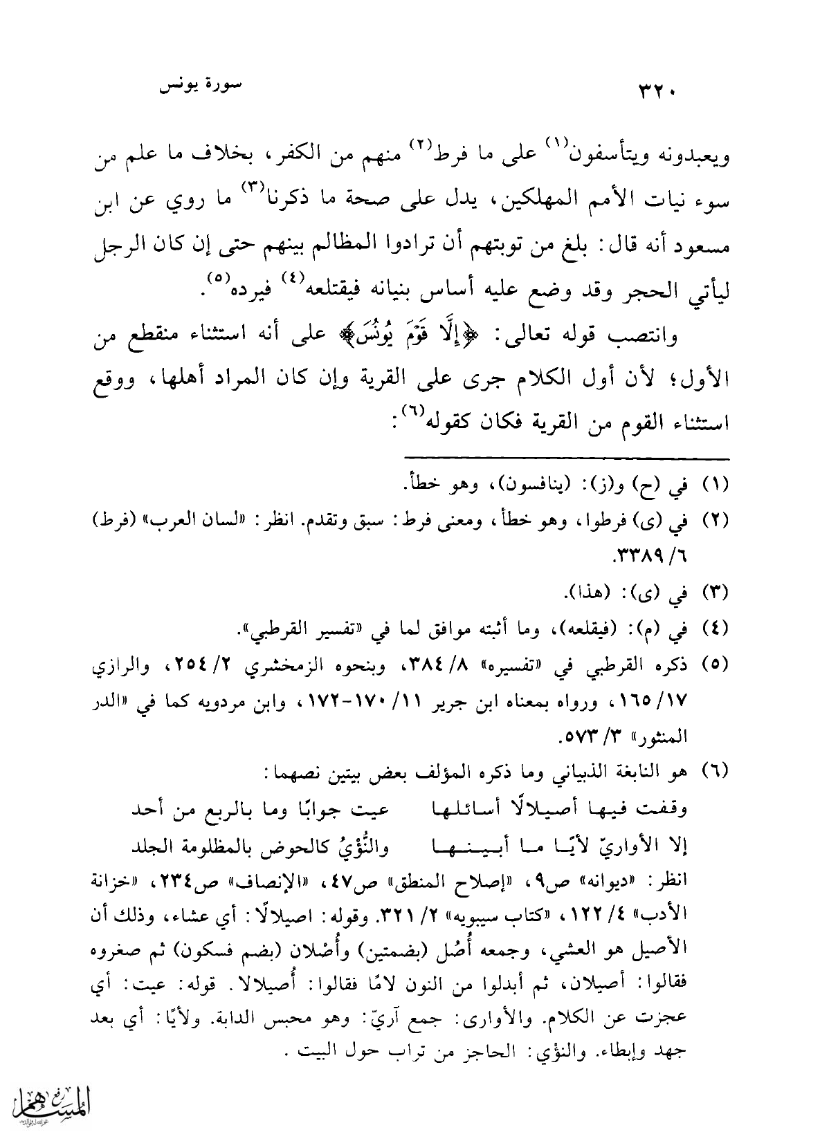 وانتصب قوله تعالى: {إِلَّا قَوْمَ يُونُسَ} على أنه استثناء منقطع من الأول؛ لأن أول الكلام جرى على القرية وإن كان المراد أهلها، ووقع استثناء القوم من القرية فكان كقوله (¬6):