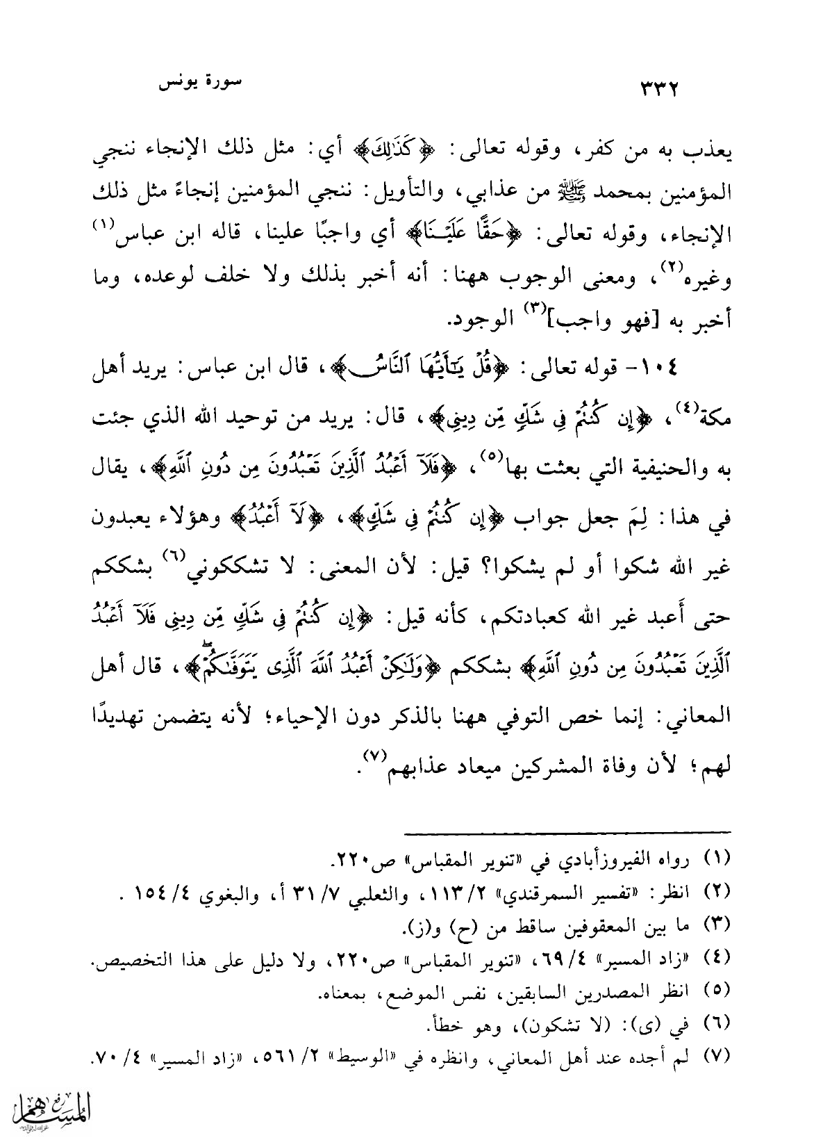 104 - قوله تعالى: {قُلْ يَا أَيُّهَا النَّاسُ}، قال ابن عباس: يريد أهل مكة (¬4)، {إِنْ كُنْتُمْ فِي شَكٍّ مِنْ دِينِي}، قال: يريد من توحيد الله الذي جئت به والحنيفية التي بعثت بها (¬5)، {فَلَا أَعْبُدُ الَّذِينَ تَعْبُدُونَ مِنْ دُونِ اللَّهِ}، يقال في هذا: لِمَ جعل جواب {إِنْ كُنْتُمْ فِي شَكٍّ}، {لَآ أَعْبُدُ} وهؤلاء يعبدون غير الله شكوا أو لم يشكوا؟ قيل: لأن المعنى: لا تشككوني (¬6) بشككم حتى أَعبد غير الله كعبادتكم، كأنه قيل: {إِنْ كُنْتُمْ فِي شَكٍّ مِنْ دِينِي فَلَا أَعْبُدُ الَّذِينَ تَعْبُدُونَ مِنْ دُونِ اللَّهِ} بشككم {وَلَكِنْ أَعْبُدُ اللَّهَ الَّذِي يَتَوَفَّاكُمْ}، قال أهل المعاني: إنما خص التوفي هاهنا بالذكر دون الإحياء؛ لأنه يتضمن تهديدًا لهم؛ لأن وفاة المشركين ميعاد عذابهم (¬7).
