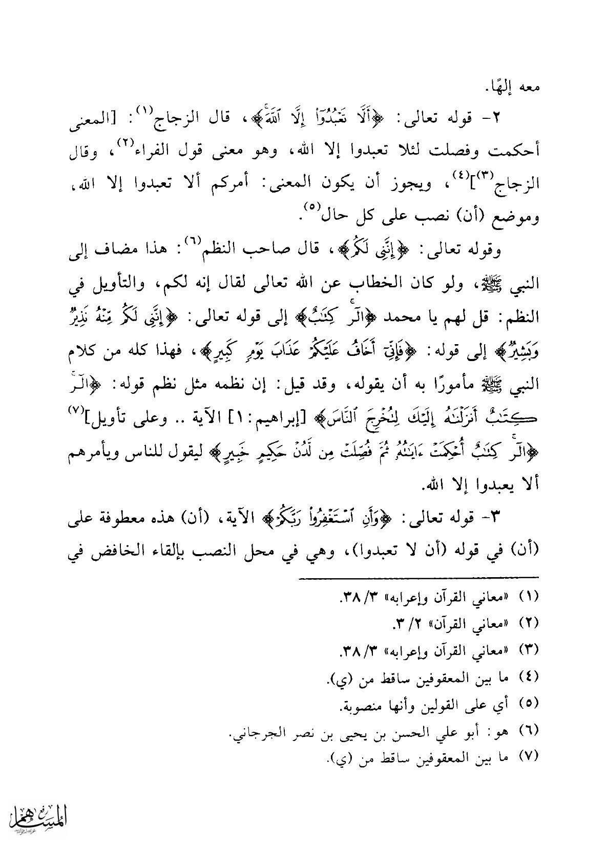 (¬1) "معاني القرآن وإعرابه" 3/ 38.
