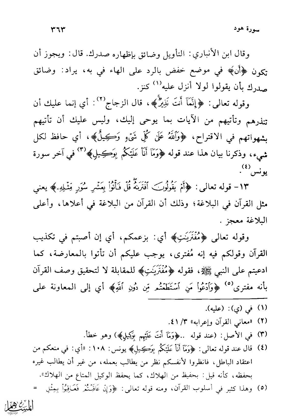 (¬3) في الأصل: (عند قوله .. {وَمَا أَنَا عَلَيْكُمْ بِوَكِيلٍ}) وهو خطأ.