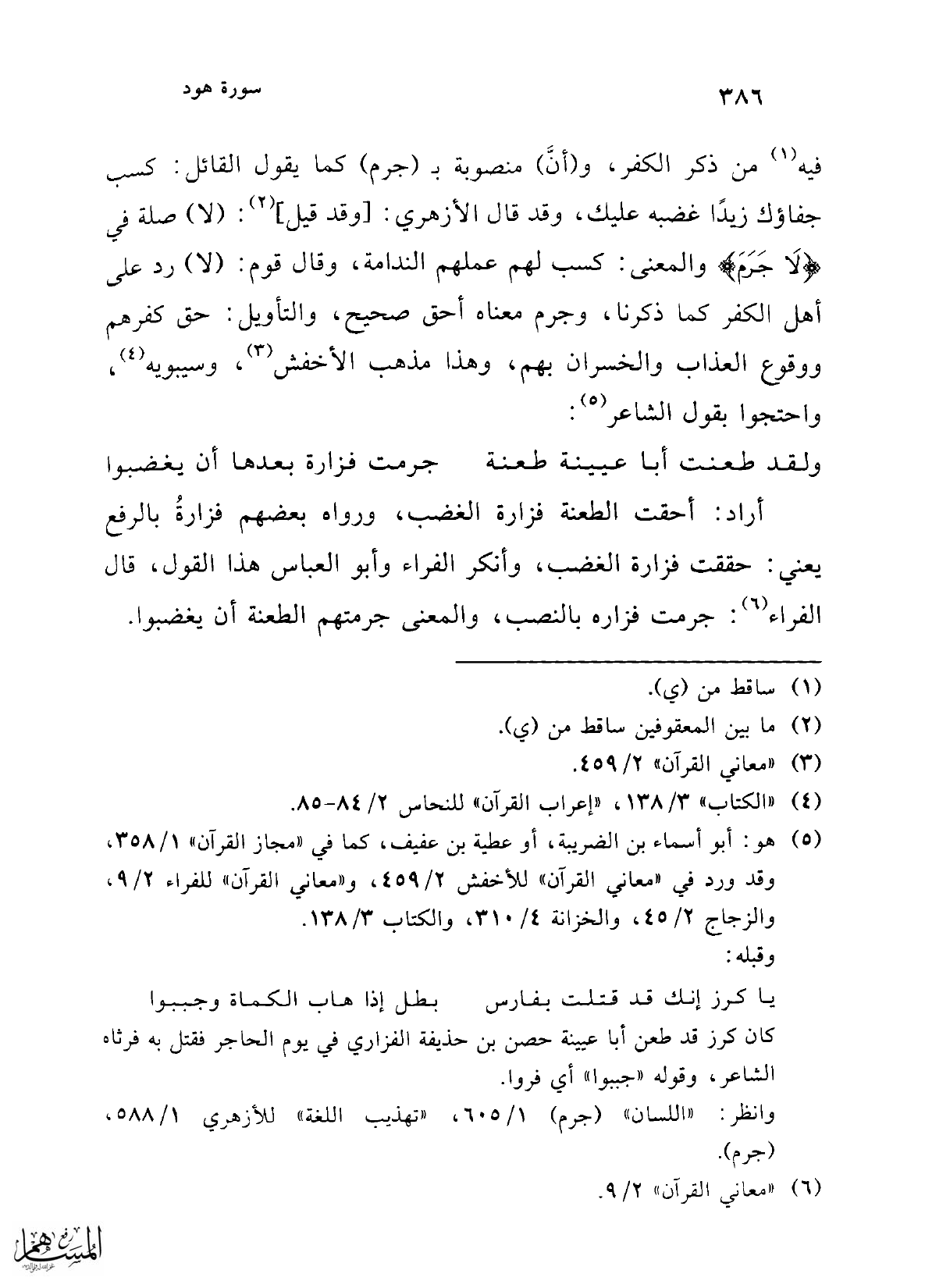 (¬5) هو: أبو أسماء بن الضريبة، أو عطية بن عفيف، كما في "مجاز القرآن" 1/ 358، وقد ورد في "معاني القرآن" للأخفش 2/ 459، و"معاني القرآن" للفراء 2/ 9، والزجاج 2/ 45، والخزانة 4/ 310، والكتاب 3/ 138.