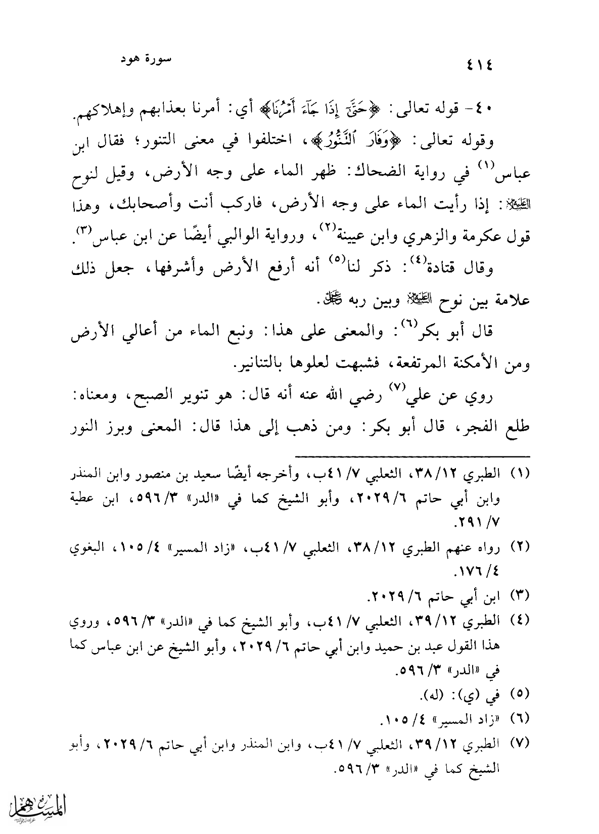 قال أبو بكر (¬6): والمعنى على هذا: ونبع الماء من أعالي الأرض ومن الأمكنة المرتفعة، فشبهت لعلوها بالتنانير.