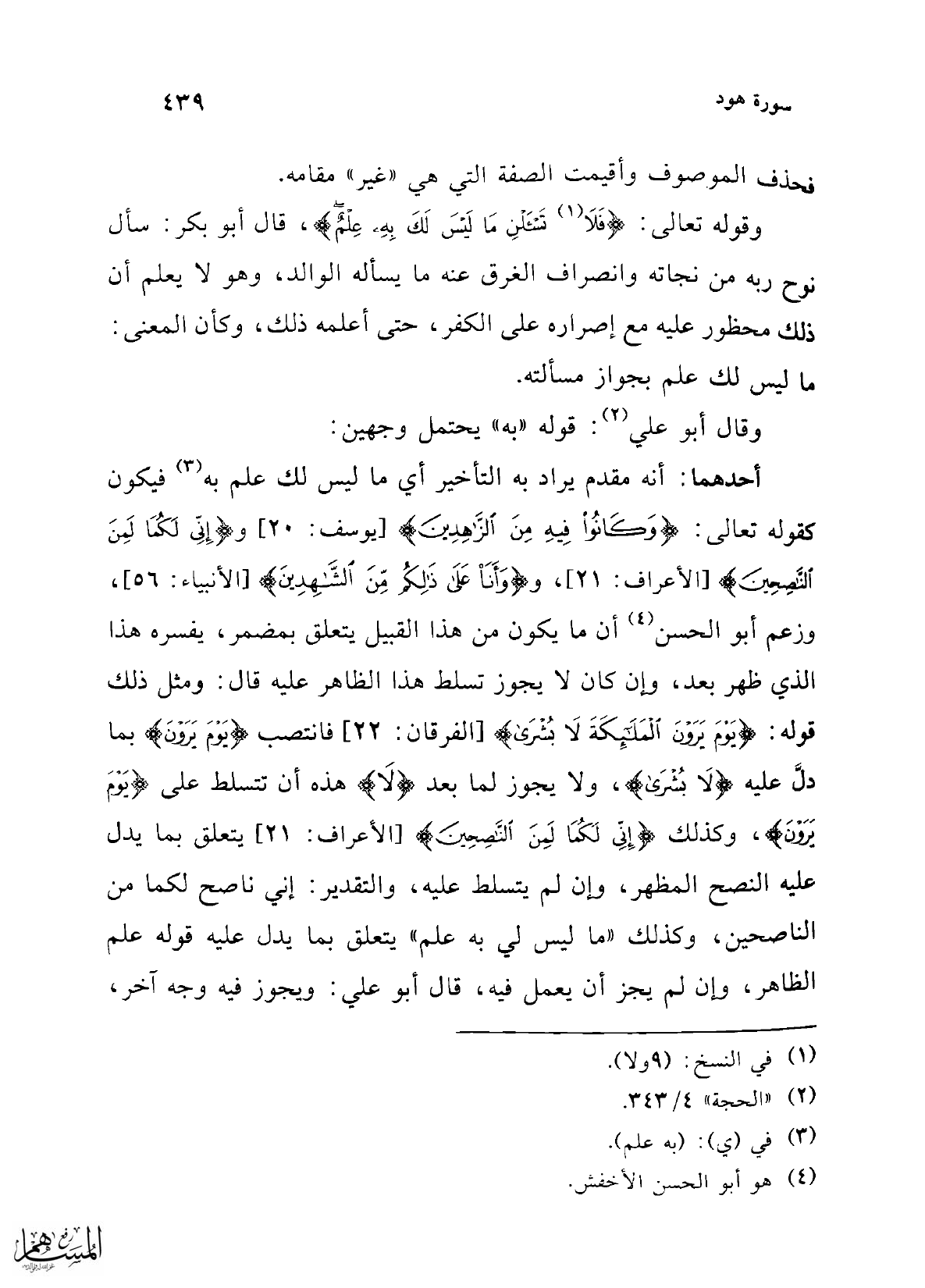 (¬2) "الحجة" 4/ 343.