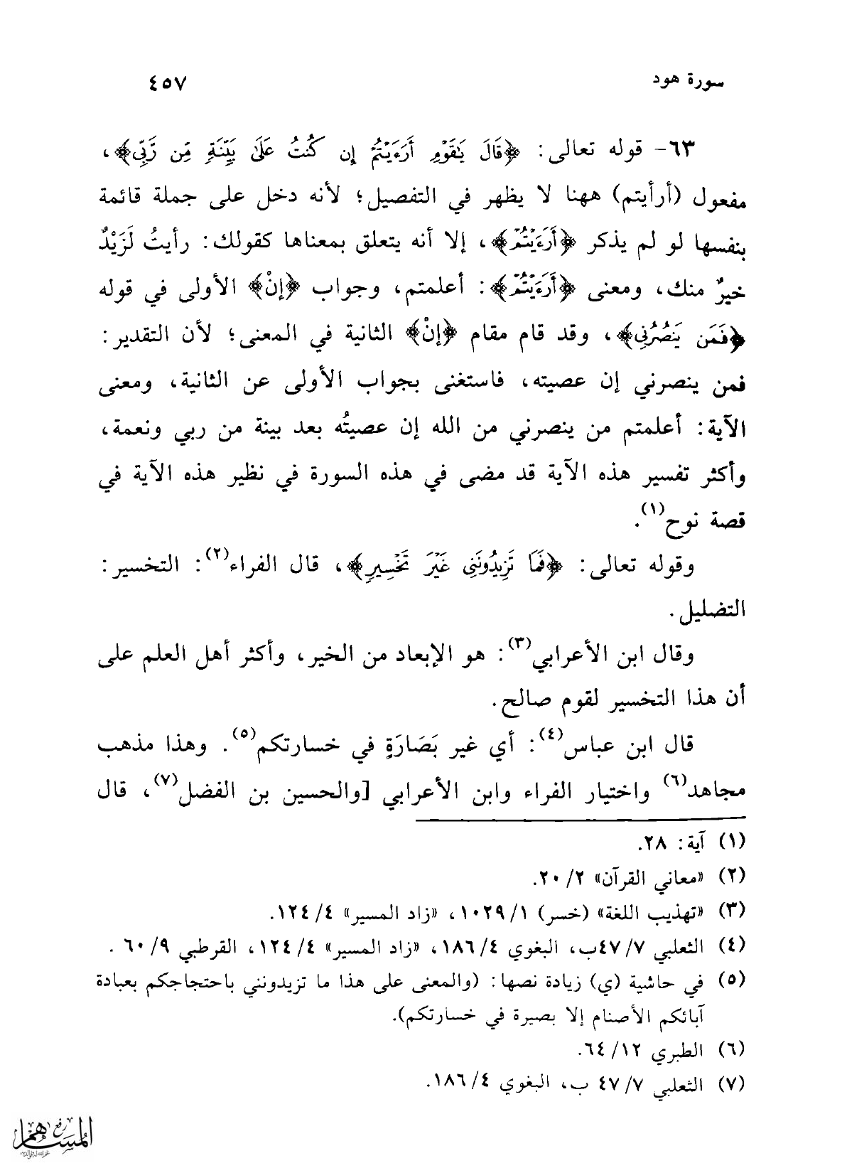 (¬3) "تهذيب اللغة" (خسر) 1/ 1029، "زاد المسير" 4/ 124.