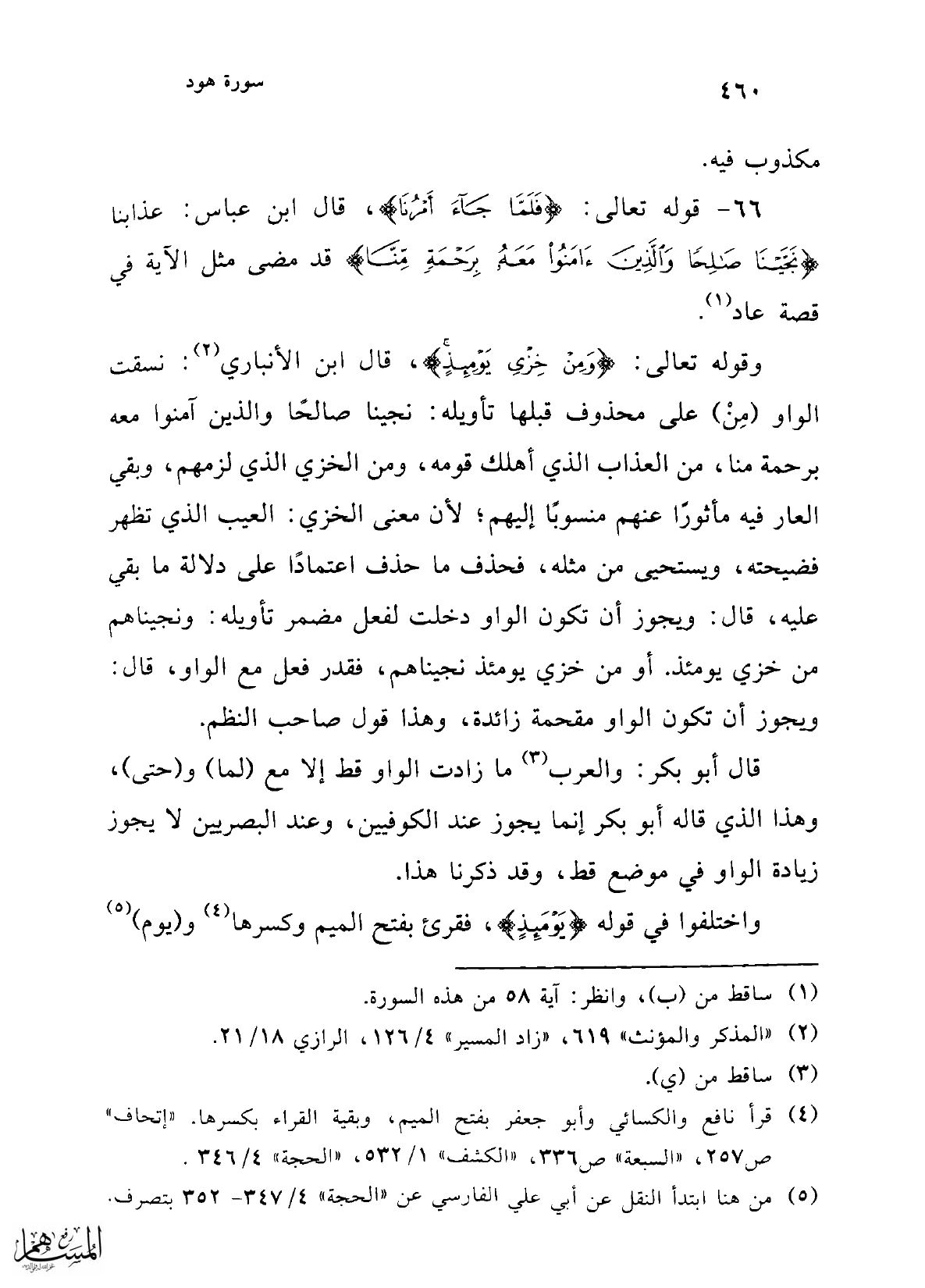 (¬2) "المذكر والمؤنث" 619، "زاد المسير" 4/ 126، الرازي 18/ 21.