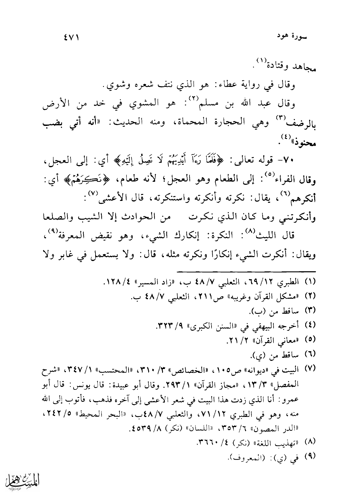 (¬7) البيت في "ديوانه" ص 105، "الخصائص" 3/ 310، "المحتسب" 1/ 347، "شرح المفصل" 3/ 13، "مجاز القرآن" 1/ 293. وقال أبو عبيدة: قال يونس: قال أبو عمرو: أنا الذي زدت هذا البيت في شعر الأعشى إلى آخره فذهب، فأتوب إلى الله منه، وهو في الطبري 12/ 71، والثعلبي 7/ 48 ب، "البحر المحيط" 5/ 242، "الدر المصون" 6/ 353، "اللسان" (نكر) 8/ 4539.
