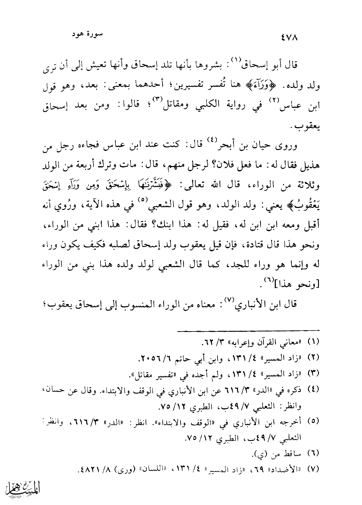 (¬4) ذكره في "الدر" 3/ 616 عن ابن الأنباري في الوقف والابتداء. وقال عن حسان، وانظر: الثعلبي 7/ 49 ب، الطبري 12/ 75.