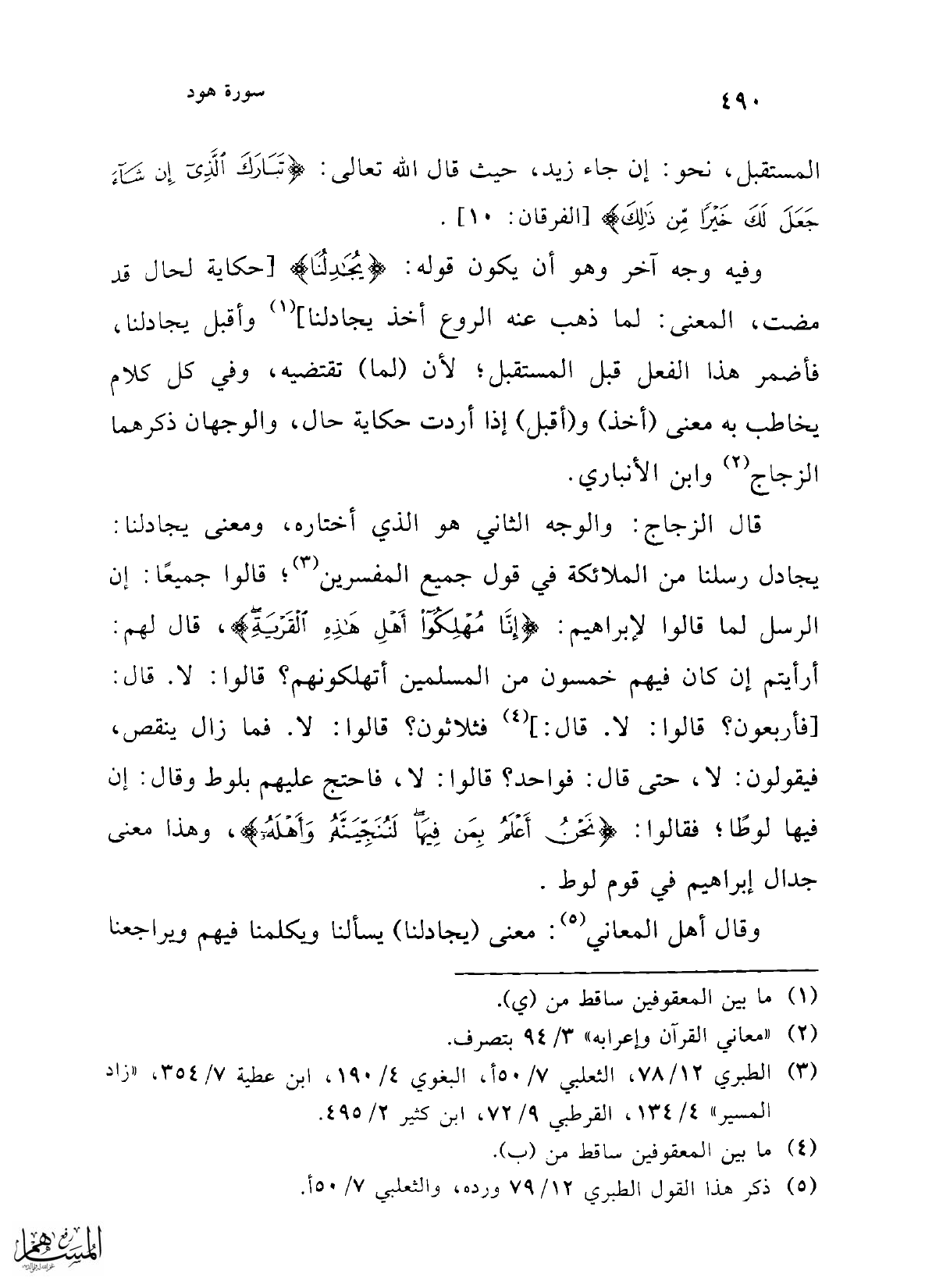 وقال أهل المعاني (¬5): معنى (يجادلنا) يسألنا ويكلمنا فيهم ويراجعنا