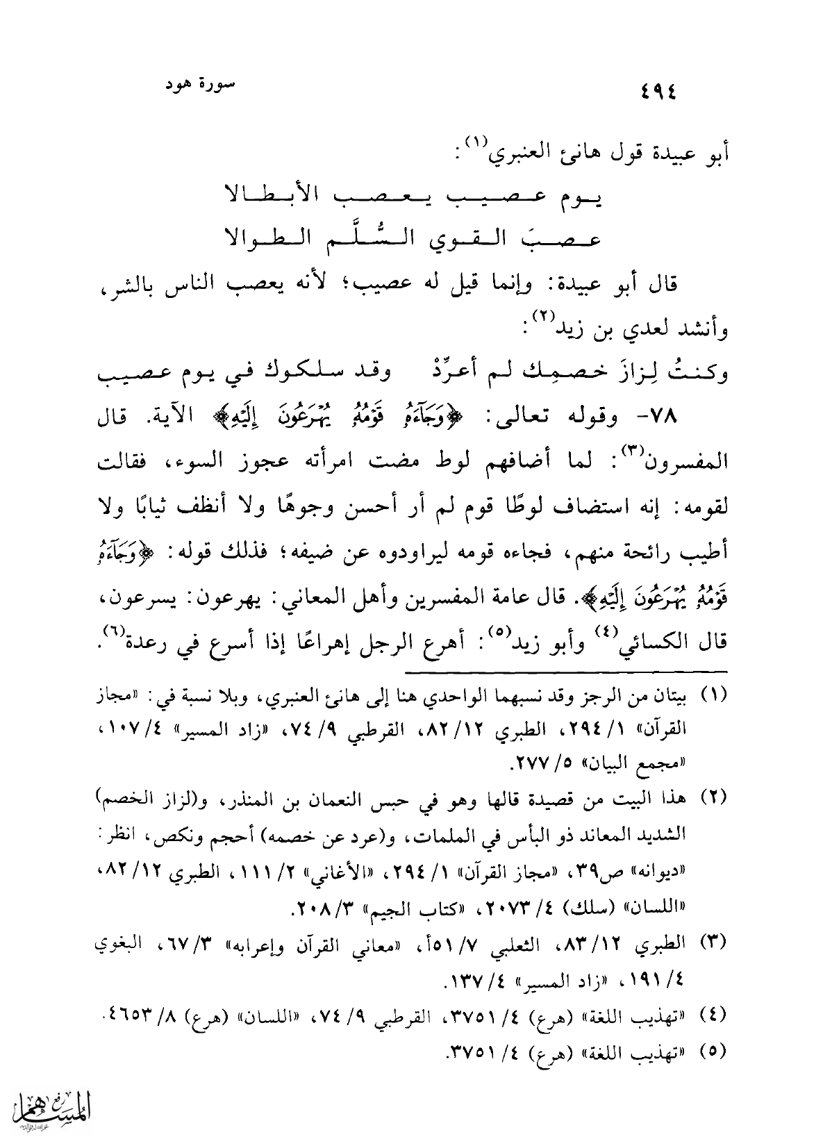 (¬4) "تهذيب اللغة" (هرع) 4/ 3751، القرطبي 9/ 74، "اللسان" (هرع) 8/ 4653.