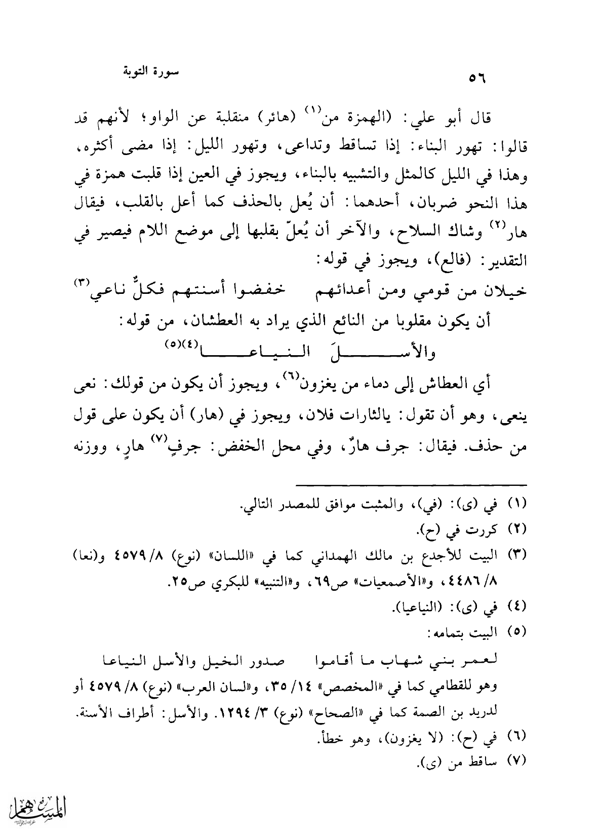 (¬3) البيت للأجدع بن مالك الهمداني كما في "اللسان" (نوع) 8/ 4579 و (نعا) 8/ 4486، و"الأصمعيات" ص 69، و"التنبيه" للبكري ص 25.