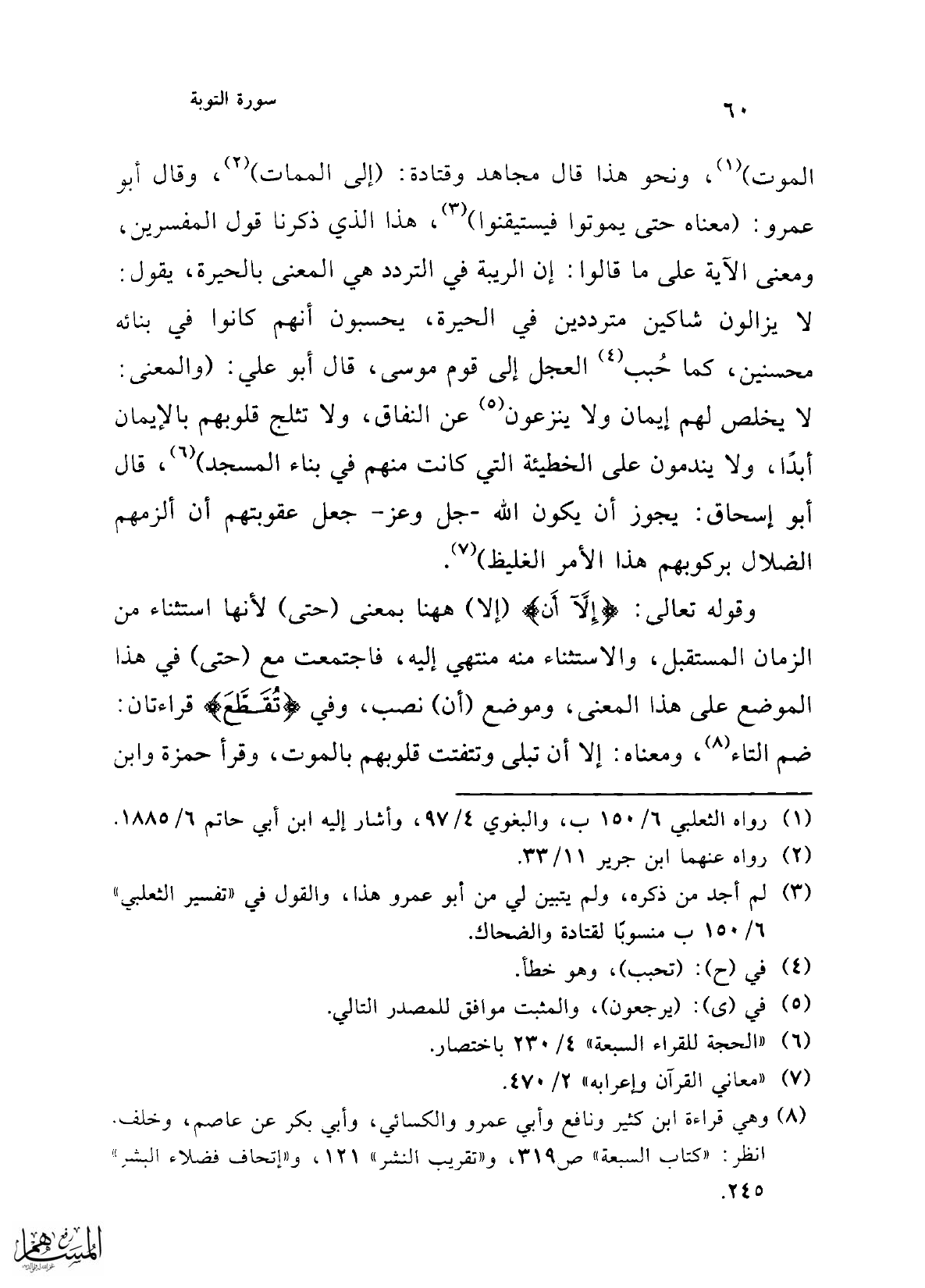 (¬6) "الحجة للقراء السبعة" 4/ 230 باختصار.