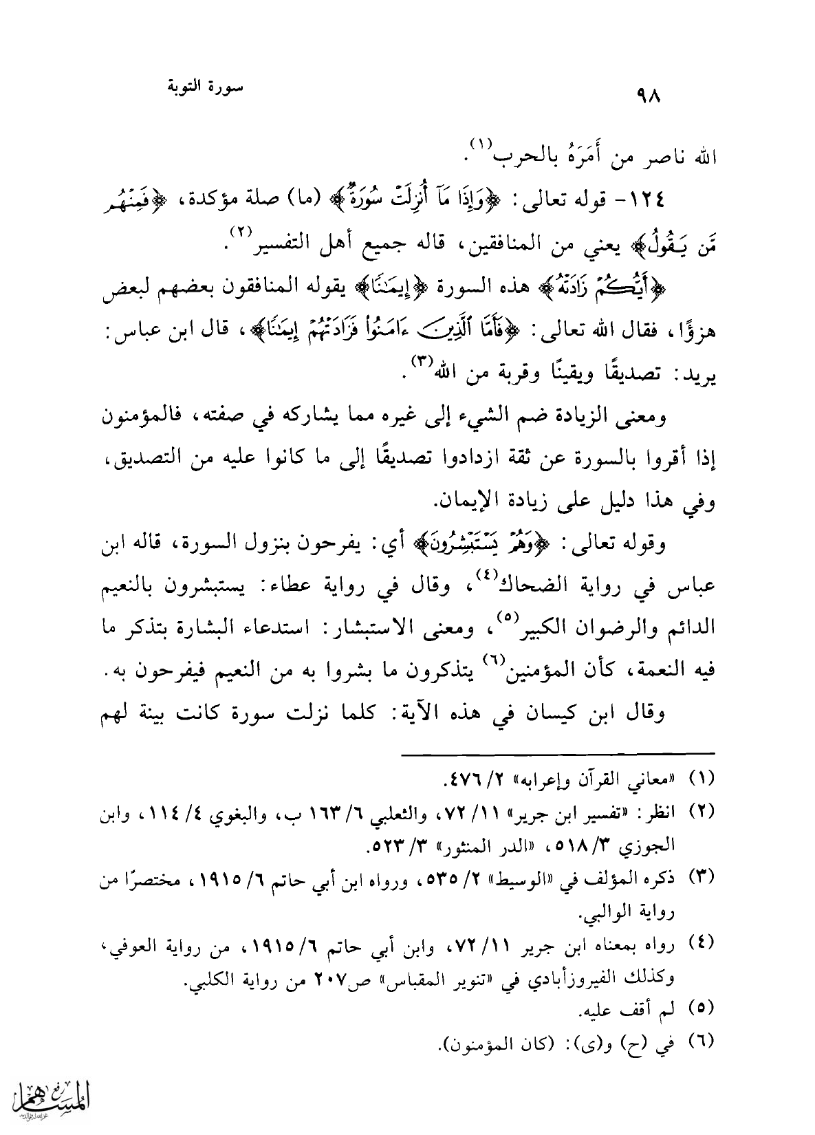 124 - قوله تعالى: {وَإِذَا مَا أُنْزِلَتْ سُورَةٌ} (ما) صلة مؤكدة، {فَمِنْهُمْ مَنْ يَقُولُ} يعني من المنافقين، قاله جميع أهل التفسير (¬2).