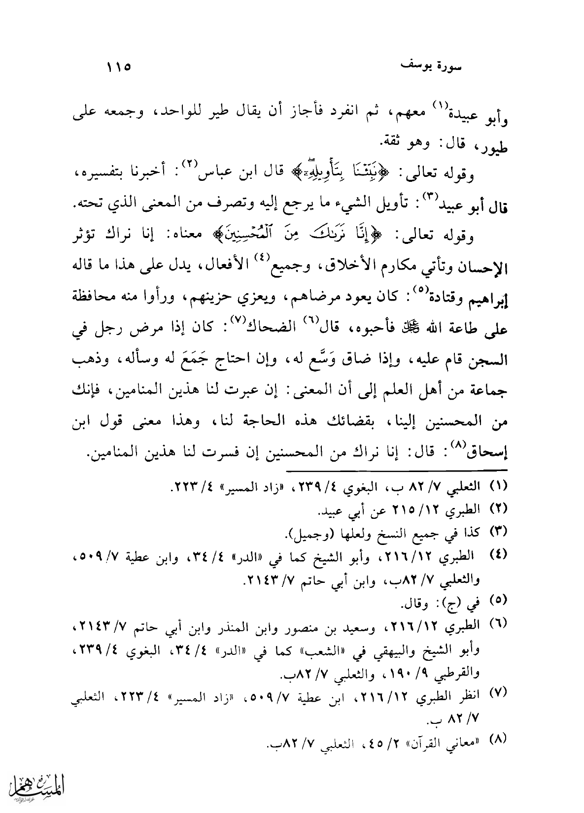 (¬8) انظر الطبري 12/ 216، ابن عطية 7/ 509، "زاد المسير" 4/ 223، الثعلبي 7/ 82 ب.