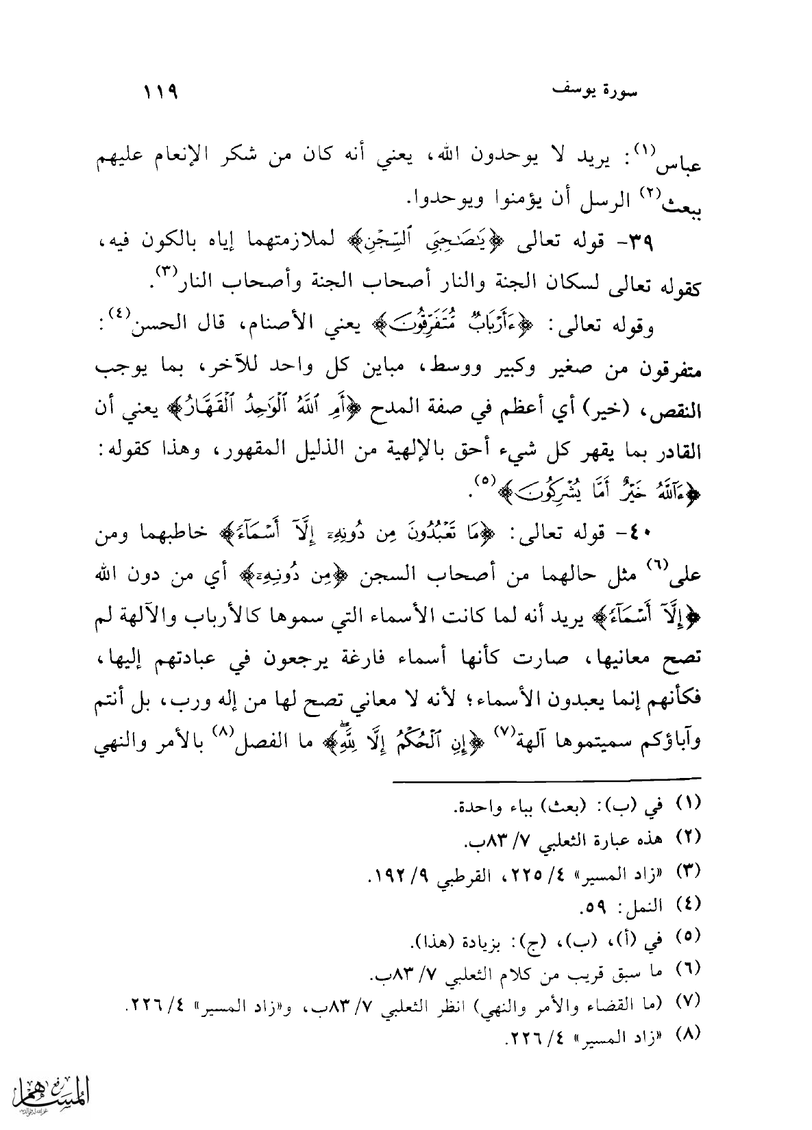 (¬3) هذه عبارة الثعلبي 7/ 83 ب.