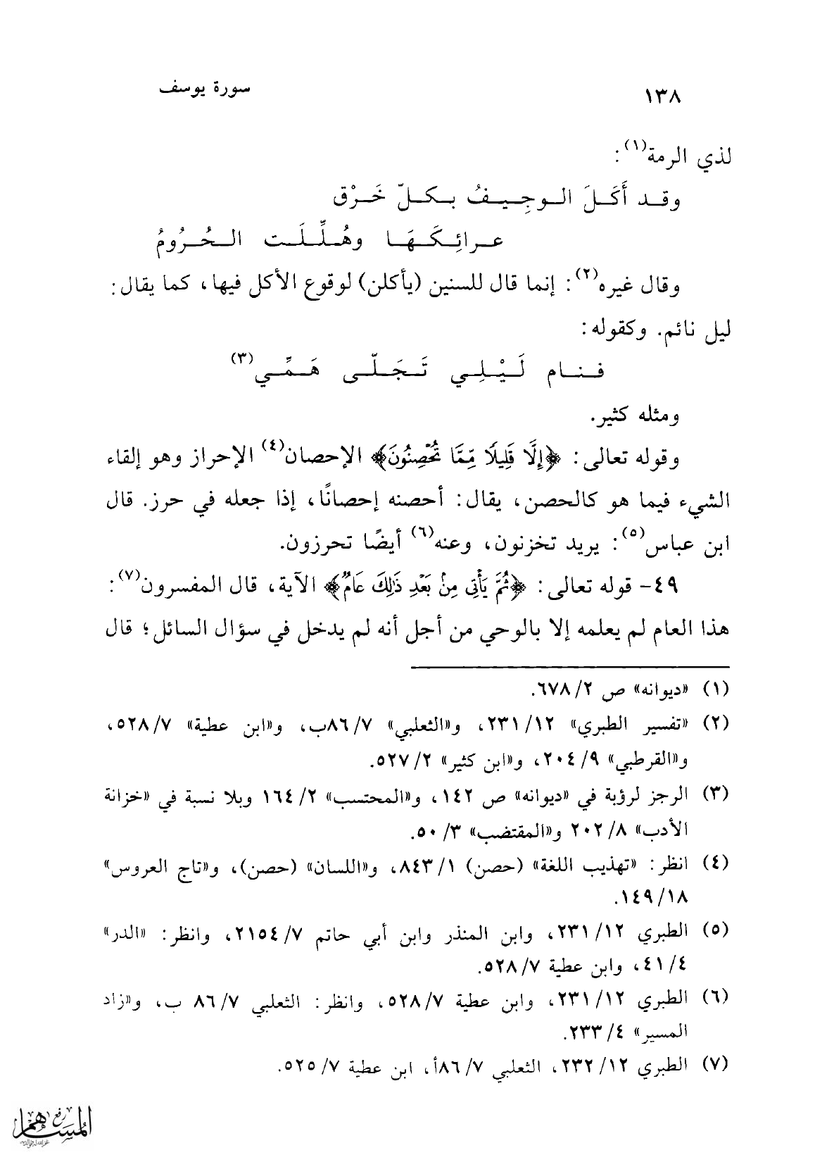 (¬2) "تفسير الطبري" 12/ 231، و"الثعلبي" 7/ 86 ب، و"ابن عطية" 7/ 528، و"القرطبي" 9/ 204، و"ابن كثير" 2/ 527.