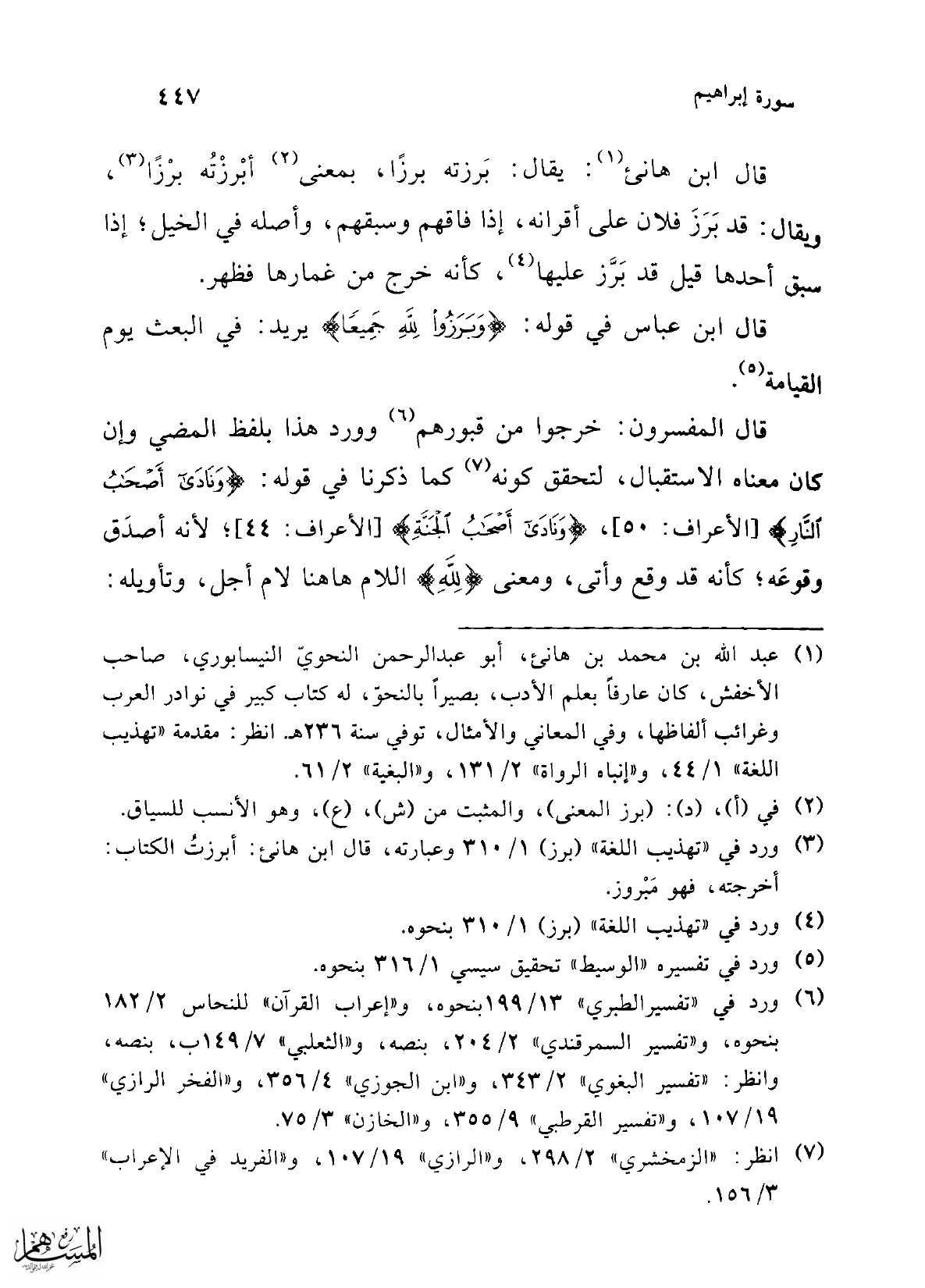 (¬3) ورد في "تهذيب اللغة" (برز) 1/ 310 وعبارته، قال ابن هانئ: أبرزتُ الكتاب: أخرجته، فهو مَبْروز.