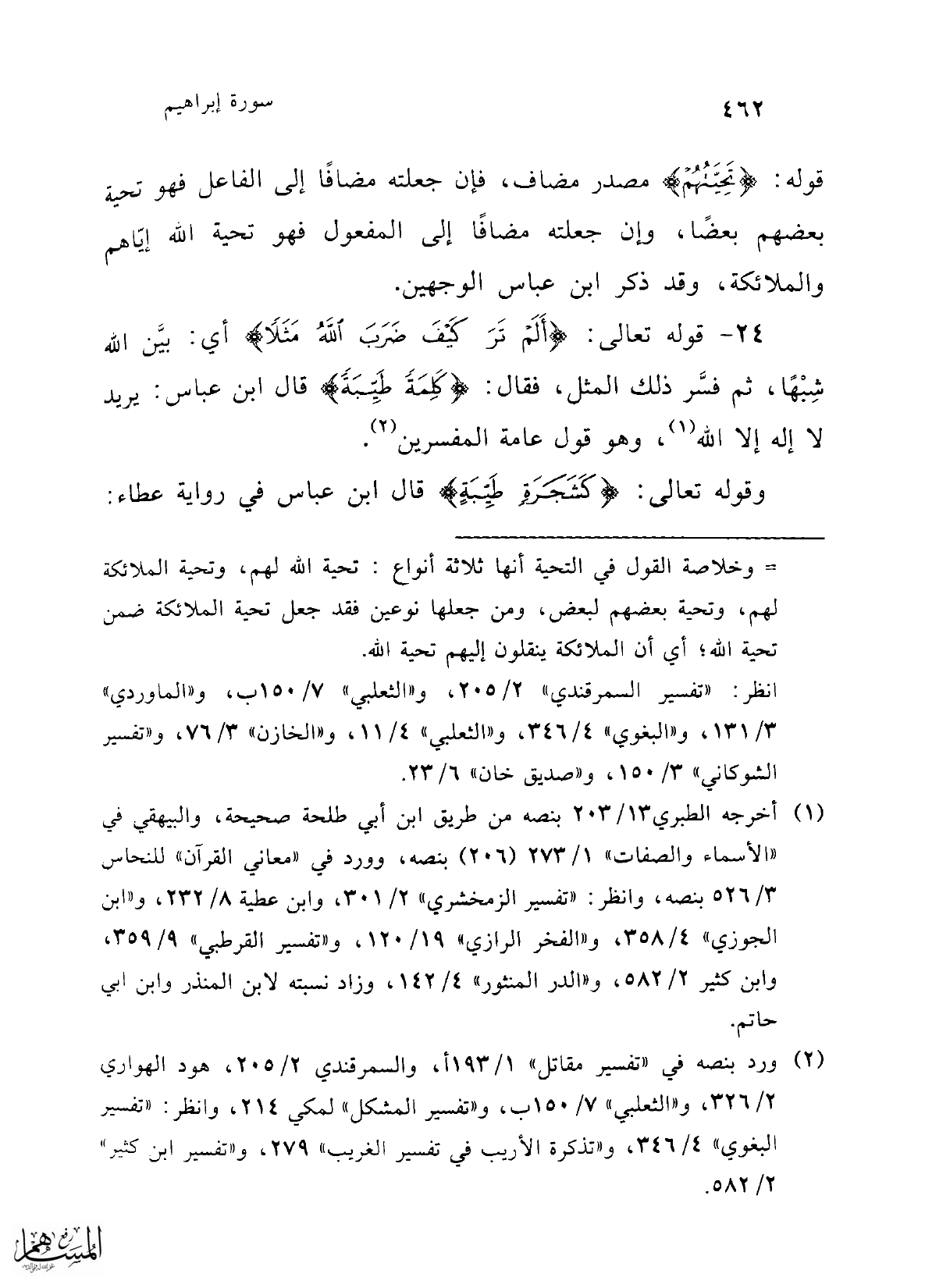 24 - قوله تعالى: {أَلَمْ تَرَ كَيْفَ ضَرَبَ اللَّهُ مَثَلًا} أي: بيّن الله شِبْهًا، ثم فسَّر ذلك المثل، فقال: {كَلِمَةً طَيِّبَةً} قال ابن عباس: يريد لا إله إلا الله (¬1)، وهو قول عامة المفسرين (¬2).