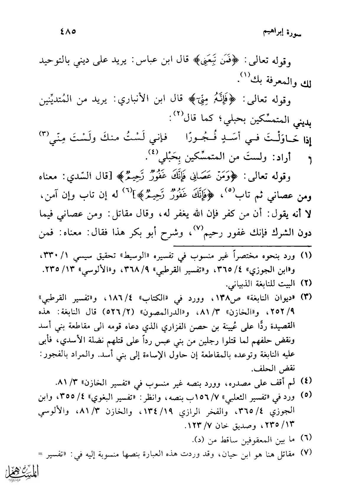 (¬5) ورد في "تفسير الثعلبي" 7/ 156 ب بنصه، وانظر: "تفسير البغوي" 4/ 355، وابن الجوزي 4/ 365، والفخر الرازي 19/ 134، والخازن 3/ 81، والألوسي 13/ 235، وصديق خان 7/ 123.