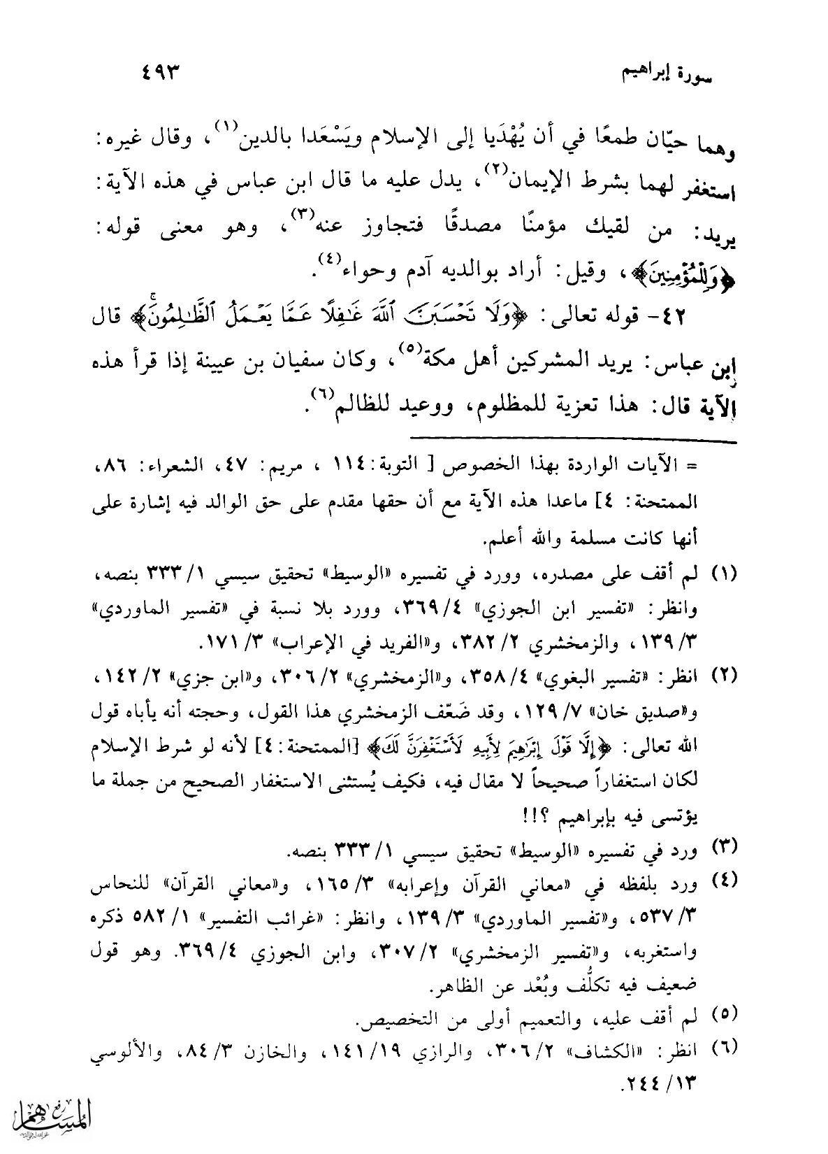 (¬3) ورد في تفسيره "الوسيط" تحقيق سيسي 1/ 333 بنصه.