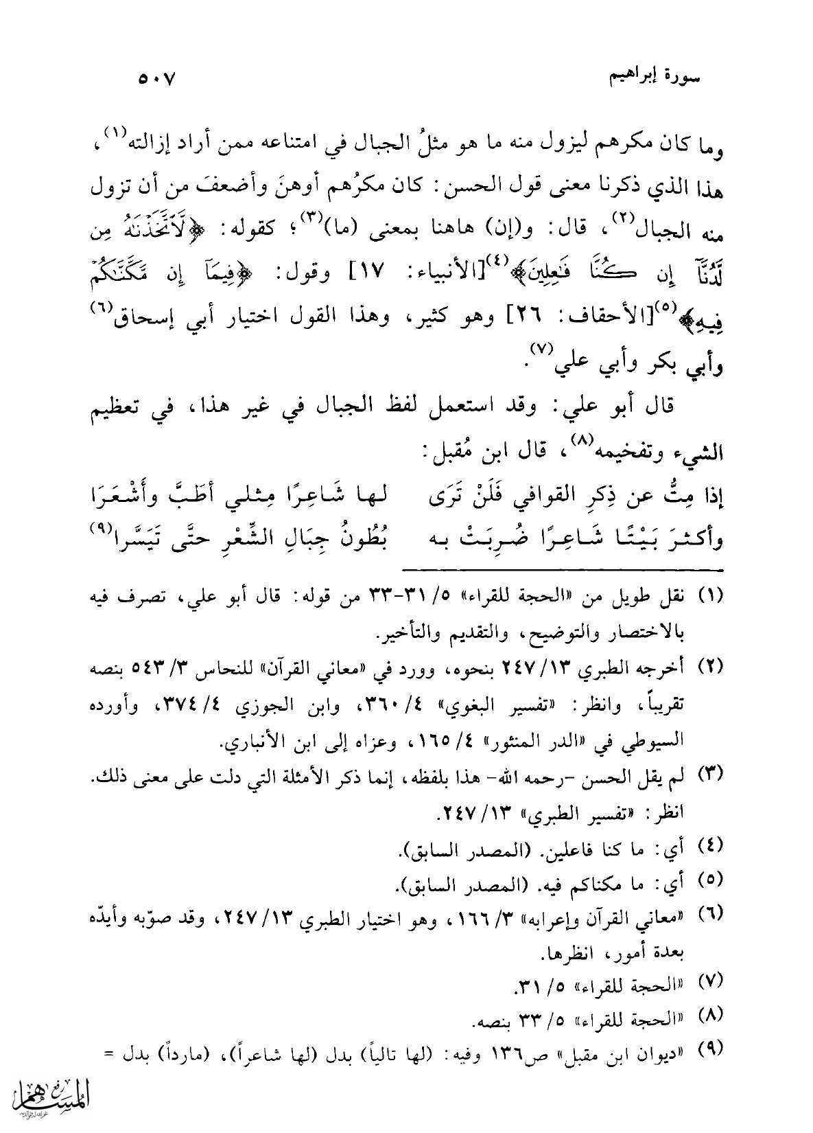 (¬7) "الحجة للقراء" 5/ 31.