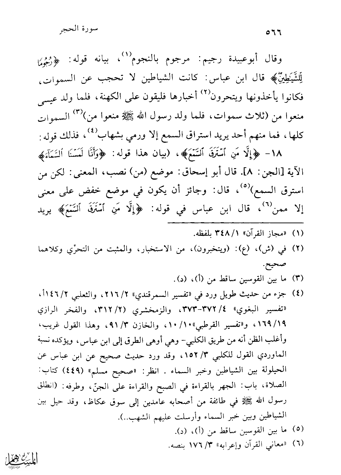 18 - {إِلَّا مَنِ اسْتَرَقَ السَّمْعَ}، (بيان هذا قوله: {وَأَنَّا لَمَسْنَا السَّمَاءَ} الآية [الجن: 8]. قال أبو إسحاق: موضع (من) نصب، المعنى: لكن من استرق السمع) (¬5)، قال: وجائز أن يكون في موضع خفض على معني إلا ممن (¬6)، قال ابن عباس في قوله: {إِلَّا مَنِ اسْتَرَقَ السَّمْعَ} يريد