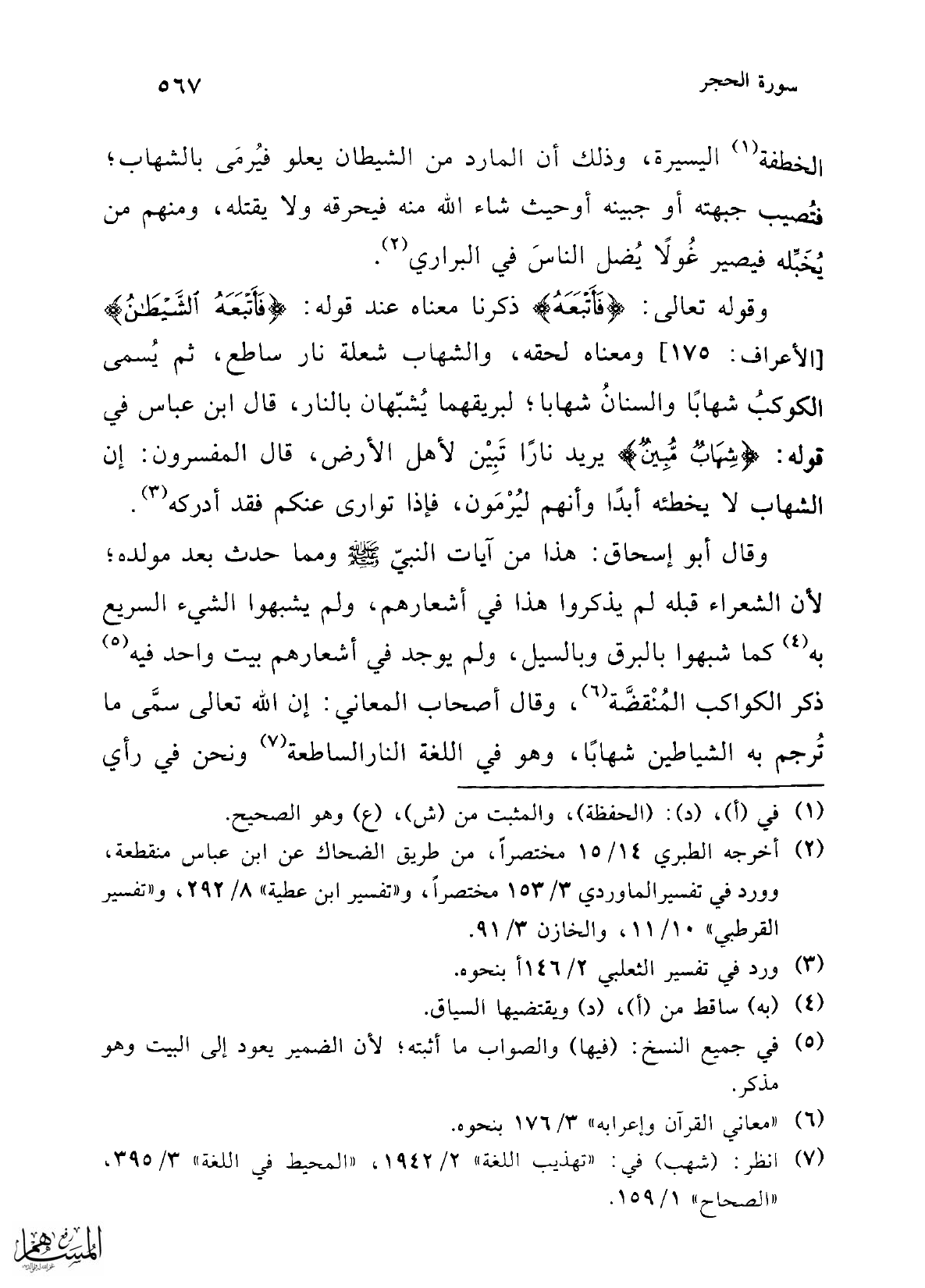 (¬7) انظر: (شهب) في: "تهذيب اللغة" 2/ 1942، "المحيط في اللغة" 3/ 395، "الصحاح" 1/ 159.