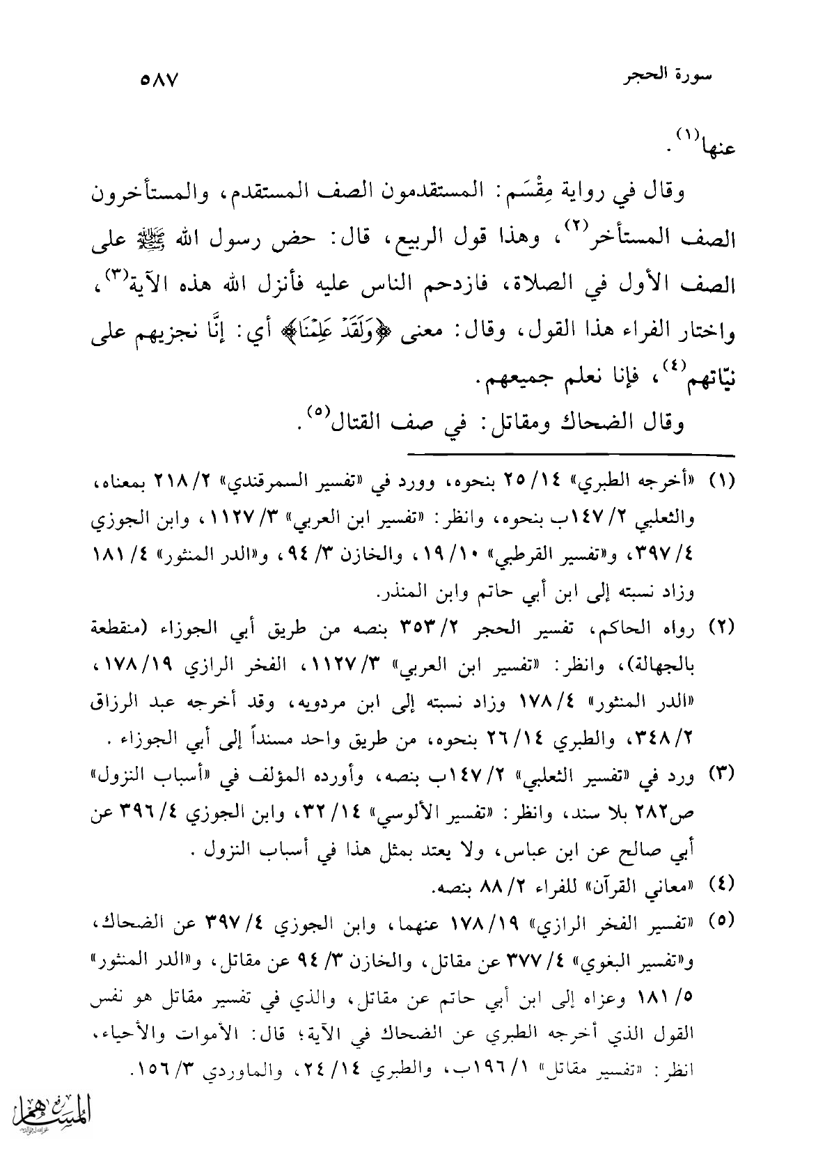 (¬2) رواه الحاكم، تفسير الحجر 2/ 353 بنصه عن طريق أبي الجوزاء (منقطعة بالجهالة)، وانظر: "تفسير ابن العربي" 3/ 1127، الفخر الرازي 19/ 178، "الدر المنثور" 4/ 178 وزاد نسبته إلى ابن مردويه، وقد أخرجه عبد الرزاق 2/ 348، والطبري 14/ 26 بنحوه، عن طريق واحد مسندًا إلى أبي الجوزاء.