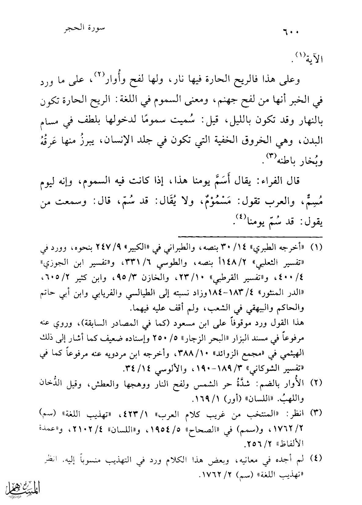 (¬3) انظر: "المنتخب من غريب كلام العرب" 1/ 423، "تهذيب اللغة" (سم) 2/ 1762، و (سمم) في "الصحاح" 5/ 1954، و"اللسان" 4/ 2102، و"عمدة الألفاظ" 2/ 256.