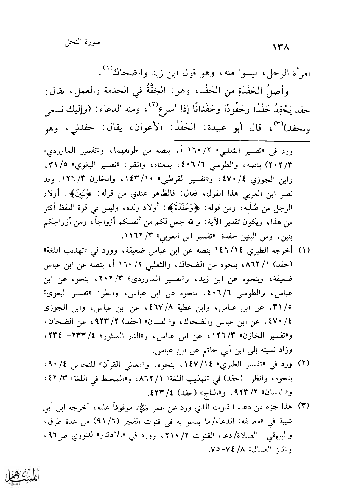 (¬2) ورد في "تفسير الطبري" 14/ 147، بنحوه، و"معاني القرآن" للنحاس 4/ 90، بنحوه، وانظر: (حفد) في "تهذيب اللغة" 1/ 862، و"المحيط في اللغة" 3/ 42، و"اللسان" 2/ 923، و"التاج" (حفد) 4/ 423.