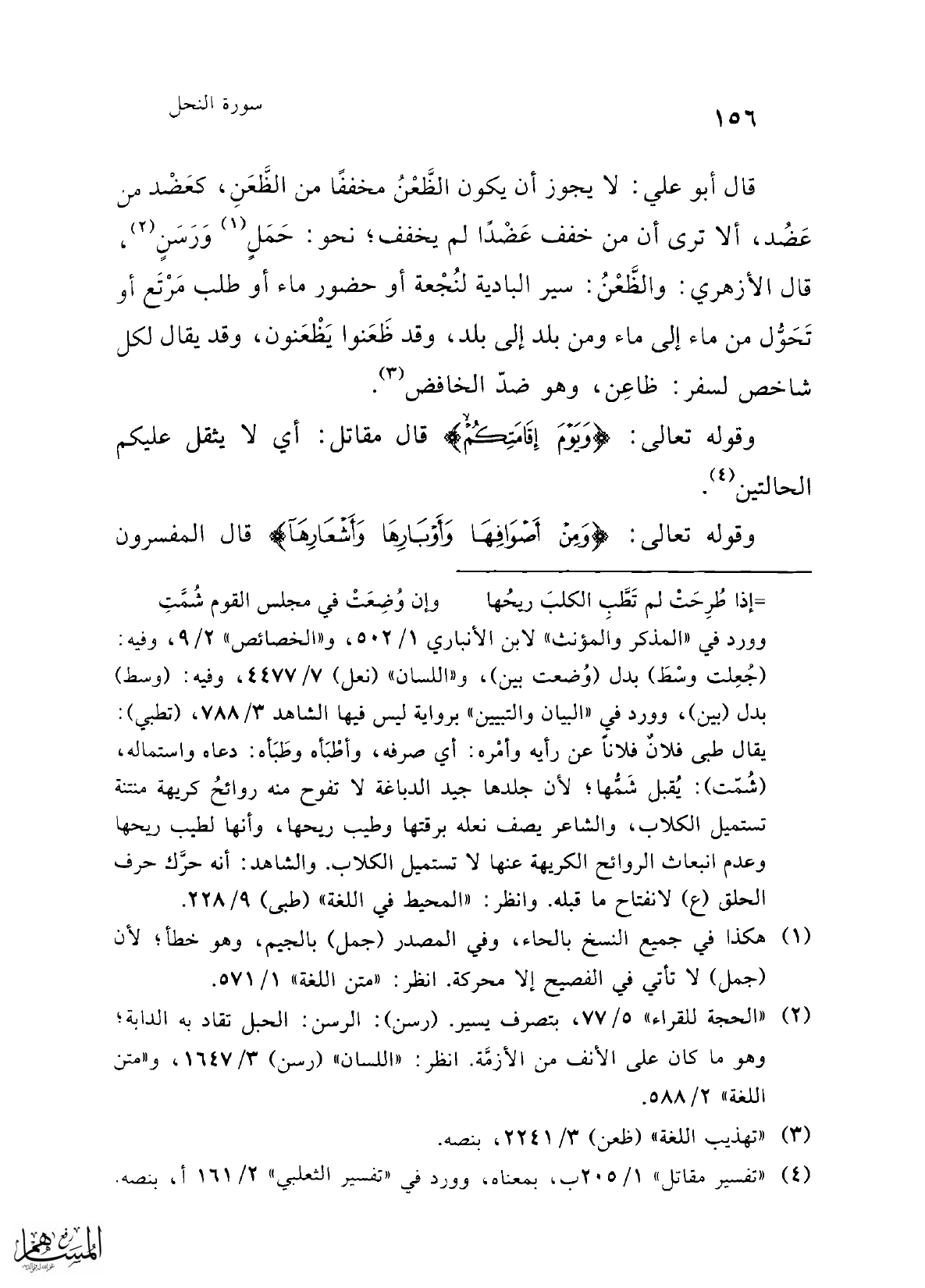 (¬3) "تهذيب اللغة" (ظعن) 3/ 2241، بنصه.