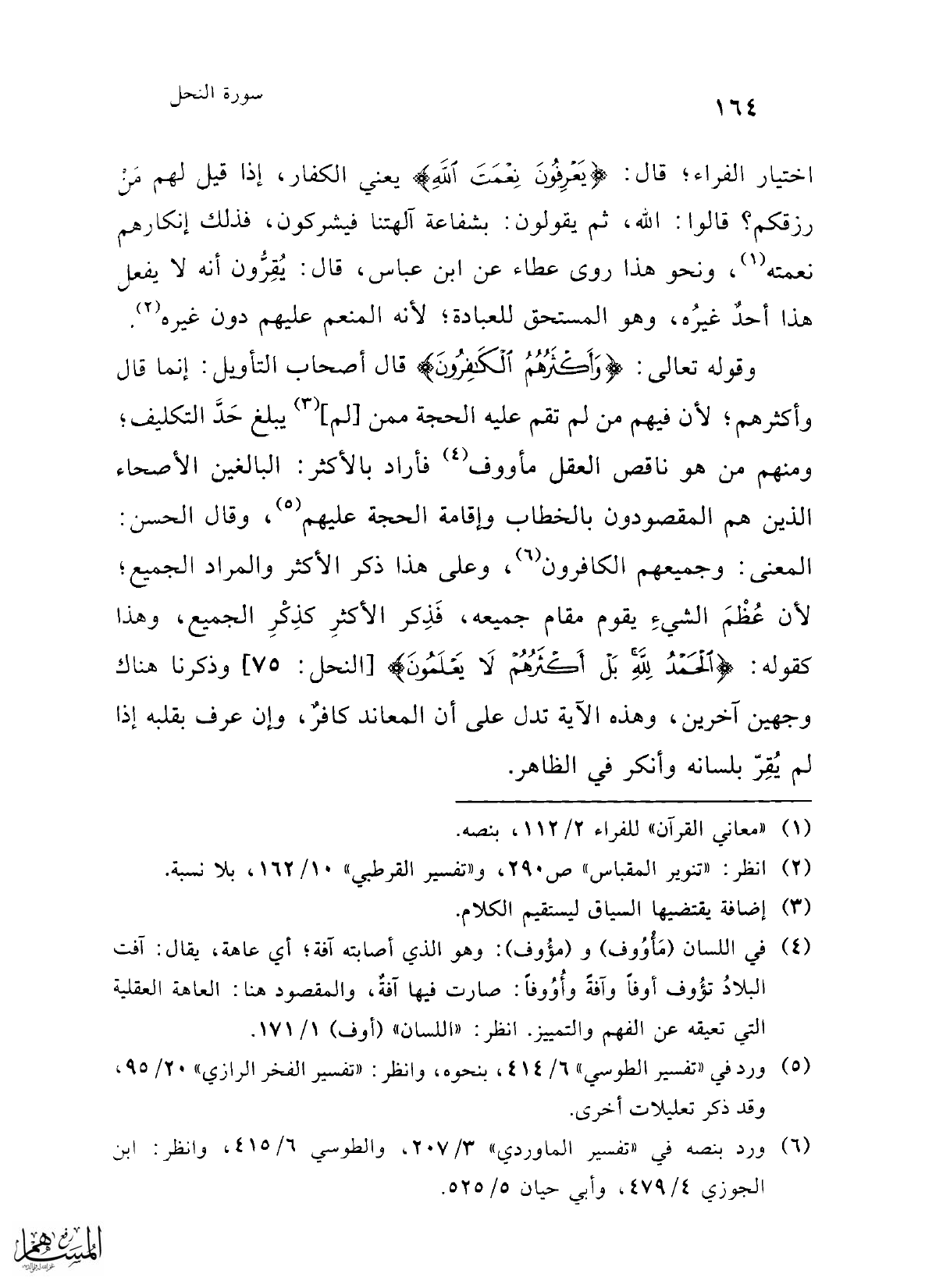 (¬6) ورد بنصه في "تفسير الماوردي" 3/ 207، والطوسي 6/ 415، وانظر: ابن الجوزي 4/ 479، وأبي حيان 5/ 525.