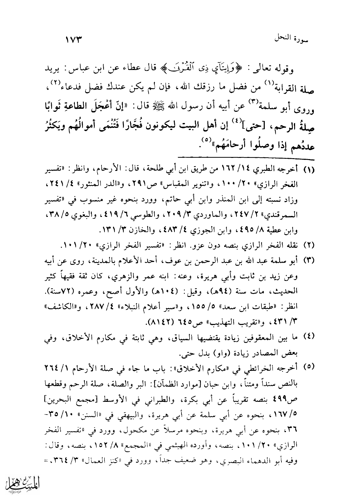 (¬1) أخرجه الطبري 14/ 162 من طريق ابن أبي طلحة، قال: الأرحام، وانظر: "تفسير الفخر الرازي" 20/ 100، و"تنوير المقباس" ص291، و"الدر المنثور" 4/ 241، وزاد نسبته إلى ابن المنذر وابن أبي حاتم، وورد بنحوه غير منسوب في "تفسير السمرقندي" 2/ 247، والماوردي 3/ 209، والطوسي 6/ 419، والبغوي 5/ 38، وابن عطية 8/ 495، وابن الجوزي 4/ 483، والخازن 3/ 131.