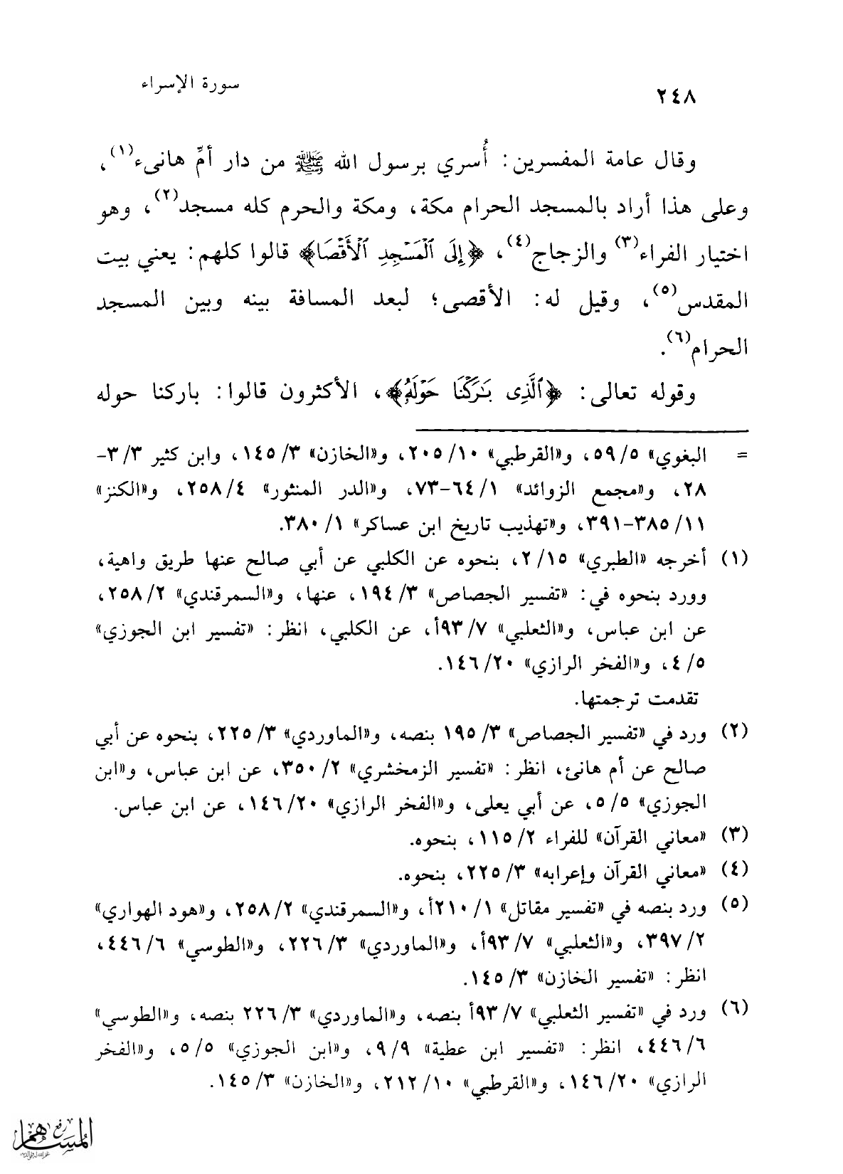 (¬2) ورد في "تفسير الجصاص" 3/ 195 بنصه، و"الماوردي" 3/ 225، بنحوه عن أبي صالح عن أم هانئ، انظر: "تفسير الزمخشري" 2/ 350، عن ابن عباس، و"ابن الجوزي" 5/ 5، عن أبي يعلى، و"الفخر الرازي"20/ 146، عن ابن عباس.