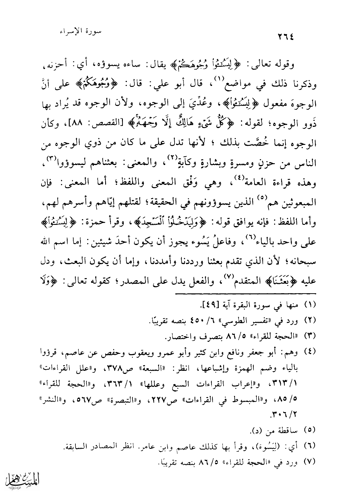 (¬3) "الحجة للقراء" 5/ 86 بتصرف واختصار.