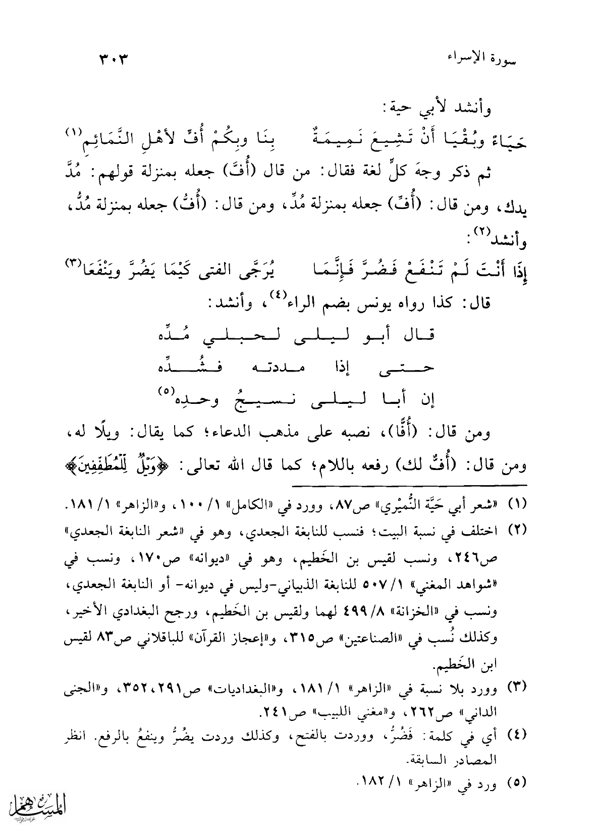 (¬1) "شعر أبي حَيَّة النُّميْري" ص 87، وورد في "الكامل" 1/ 100، و"الزاهر" 1/ 181.
