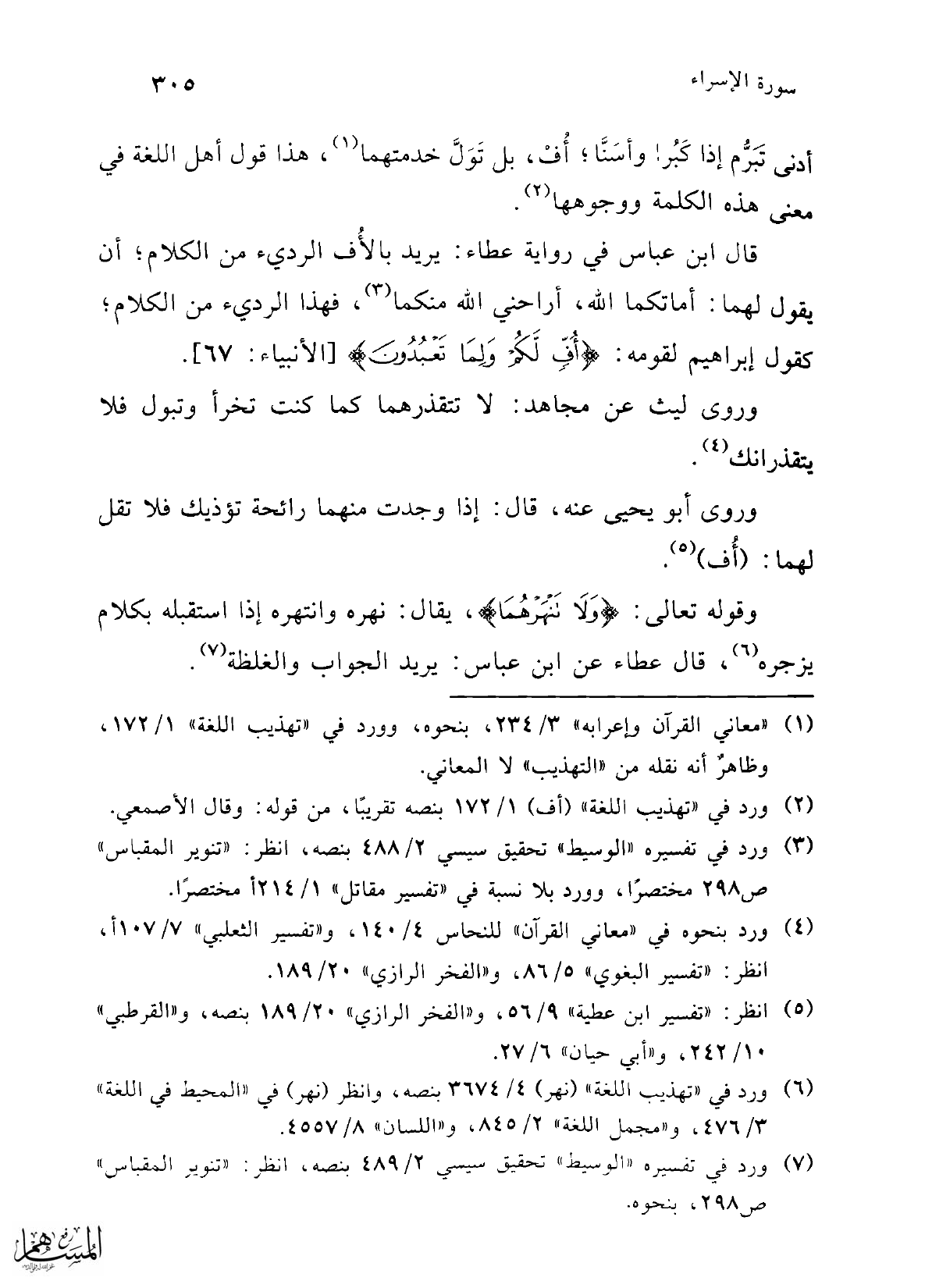 (¬7) ورد في تفسيره "الوسيط" تحقيق سيسي 2/ 489 بنصه، انظر: "تنوير المقباس" ص 298، بنحوه.