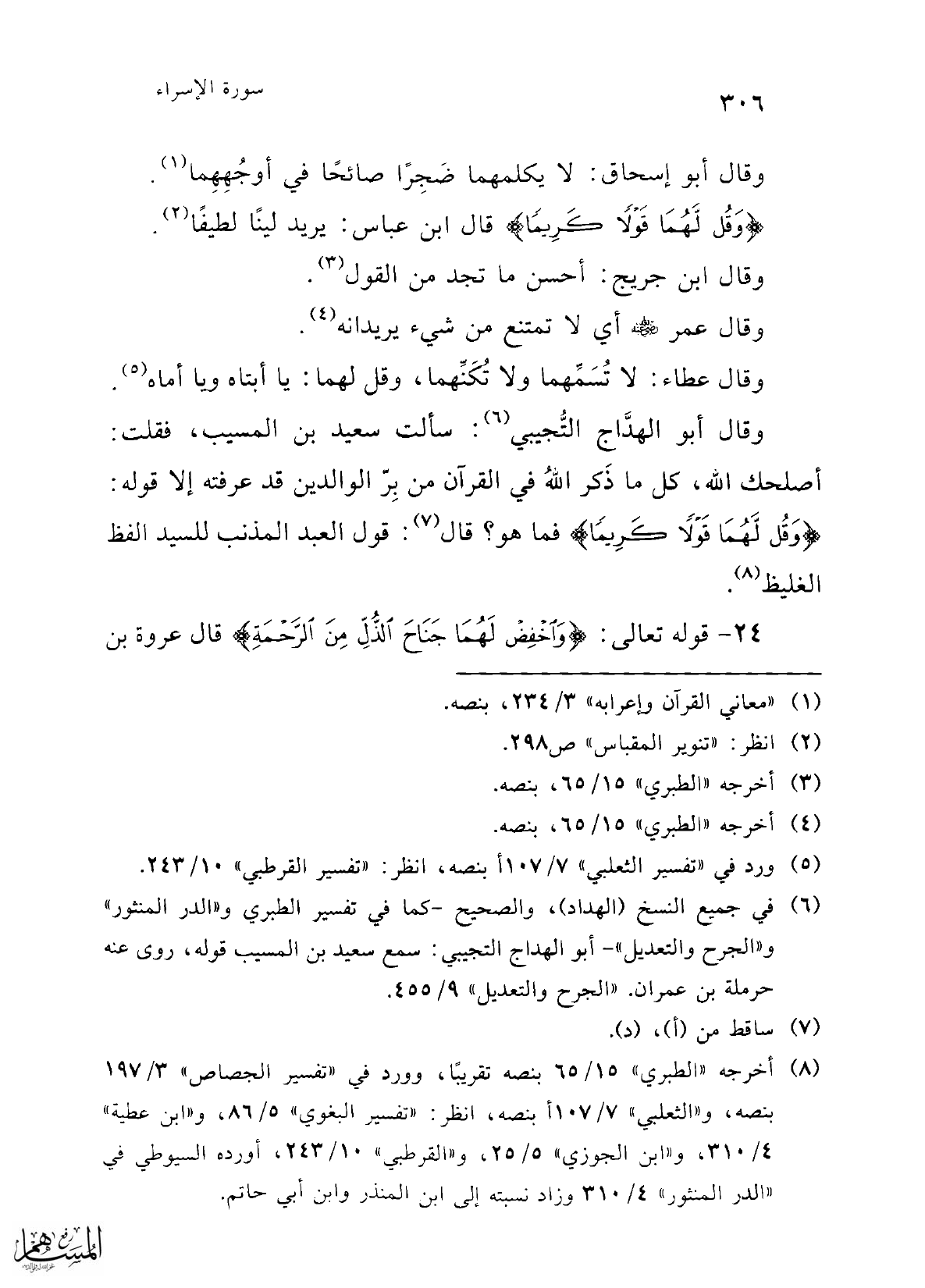 (¬6) في جميع النسخ (الهداد)، والصحيح -كما في تفسير الطبري و"الدر المنثور" و"الجرح والتعديل"- أبو الهداج التجيبي: سمع سعيد بن المسيب قوله، روى عنه حرملة بن عمران. "الجرح والتعديل" 9/ 455.