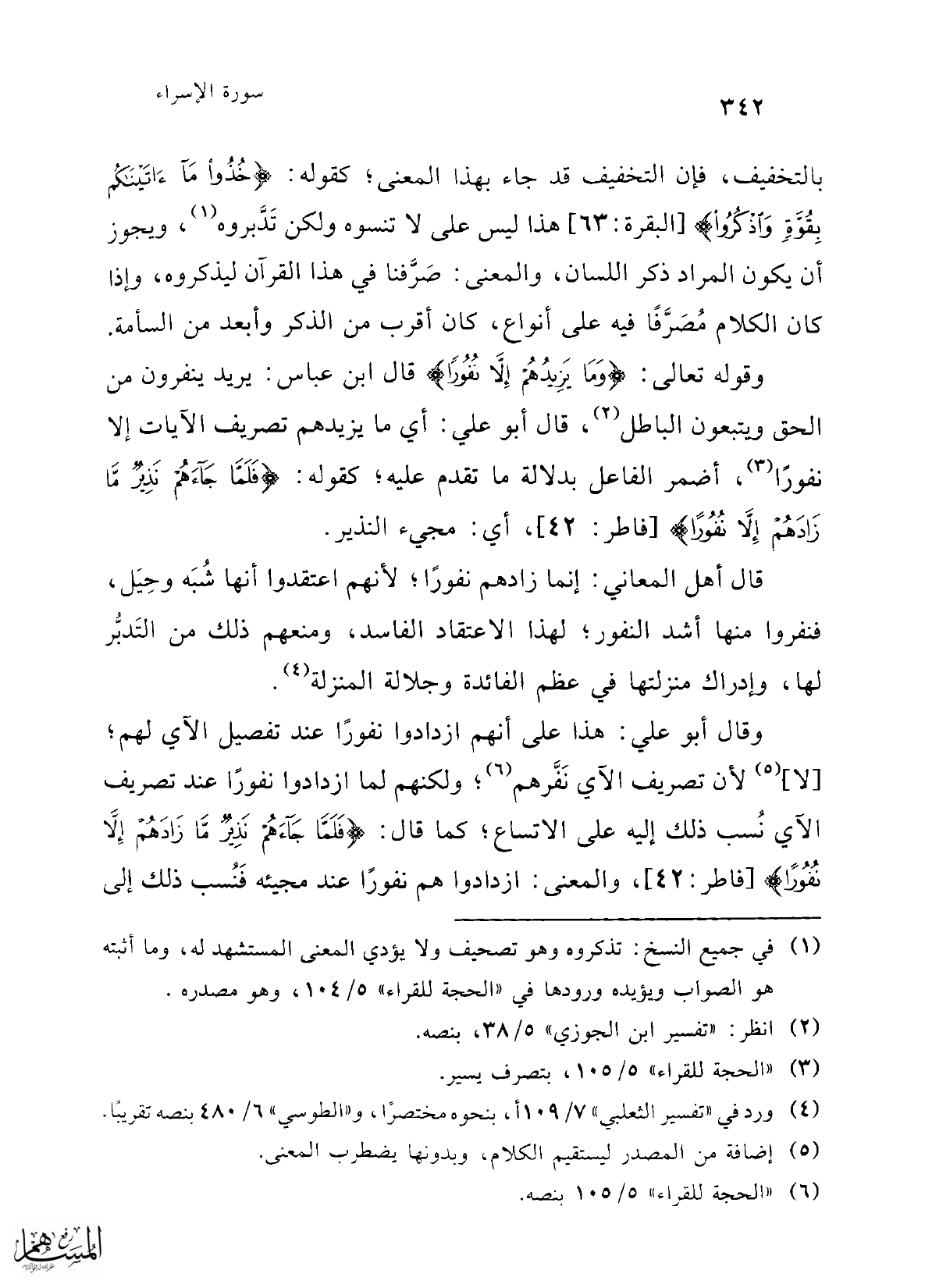 (¬6) "الحجة للقراء" 5/ 105 بنصه.
