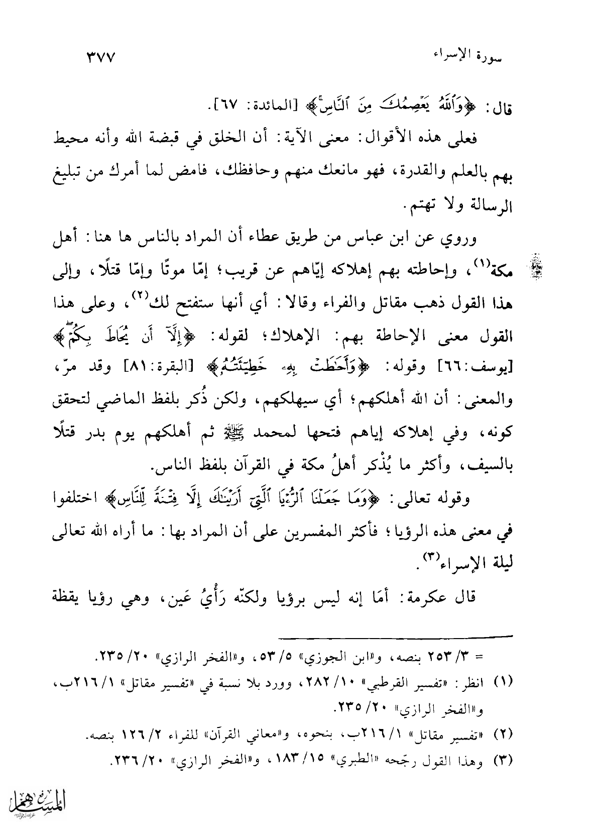= 3/ 253 بنصه، و"ابن الجوزي" 5/ 53، و"الفخر الرازي" 20/ 235.