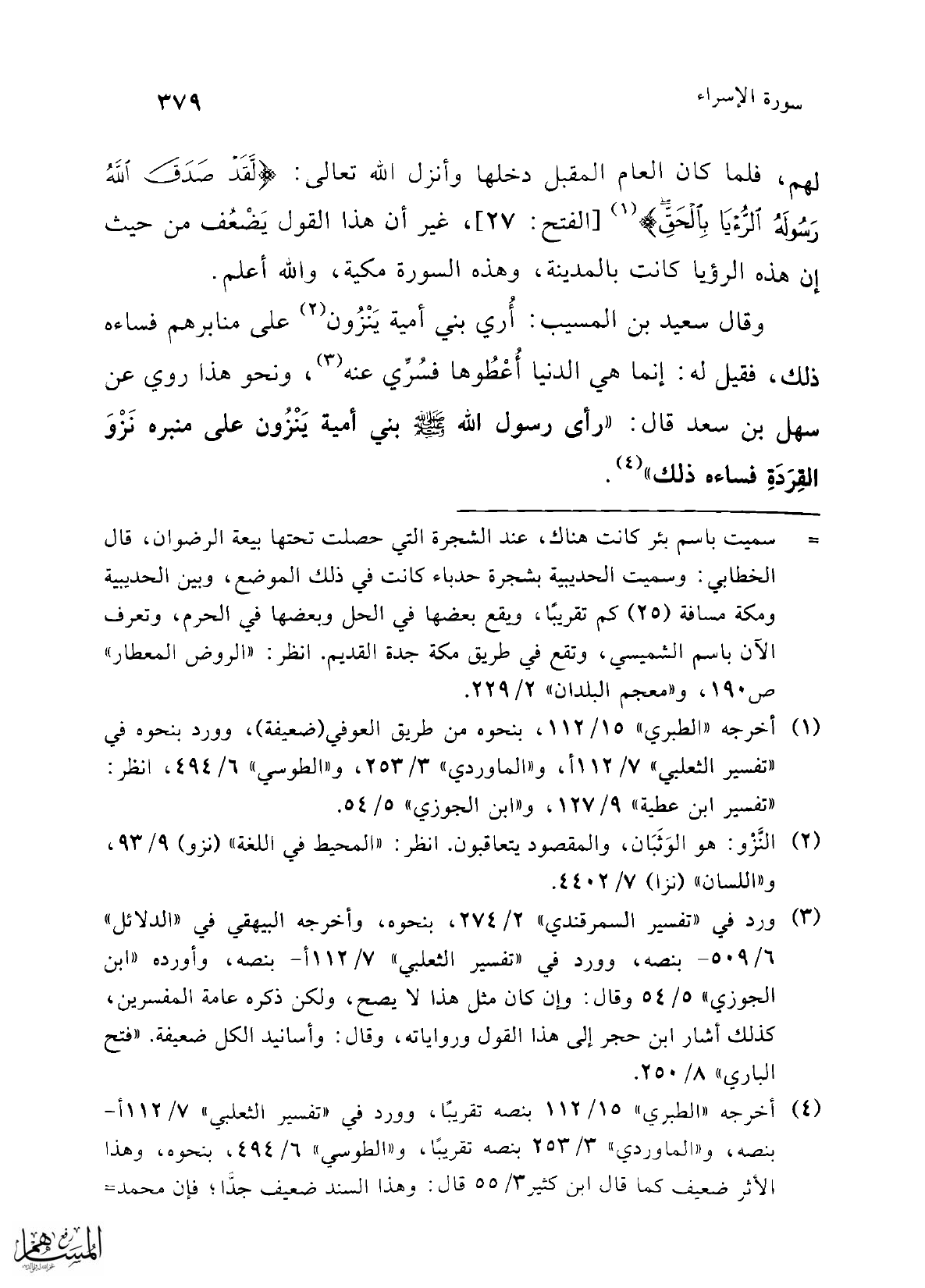 لهم، فلما كان العام المقبل دخلها وأنزل الله تعالى: {لَقَدْ صَدَقَ اللَّهُ رَسُولَهُ الرُّؤْيَا بِالْحَقِّ} (¬1) [الفتح: 27]، غير أن هذا القول يَضْعُف من حيث إن هذه الرؤيا كانت بالمدينة، وهذه السورة مكية، والله أعلم.