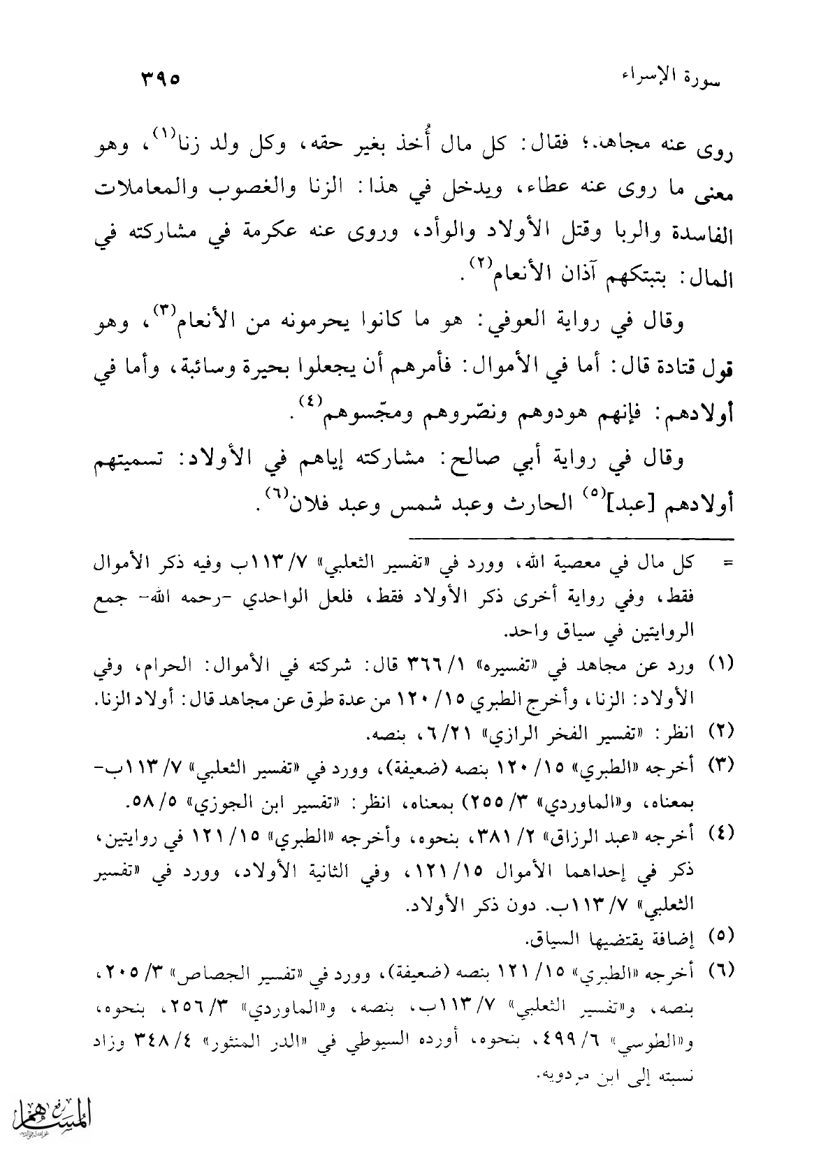 (¬1) ورد عن مجاهد في "تفسيره" 1/ 366 قال: شركته في الأموال: الحرام، وفي الأولاد: الزنا، وأخرج الطبري 15/ 120 من عدة طرق عن مجاهد قال: أولاد الزنا.