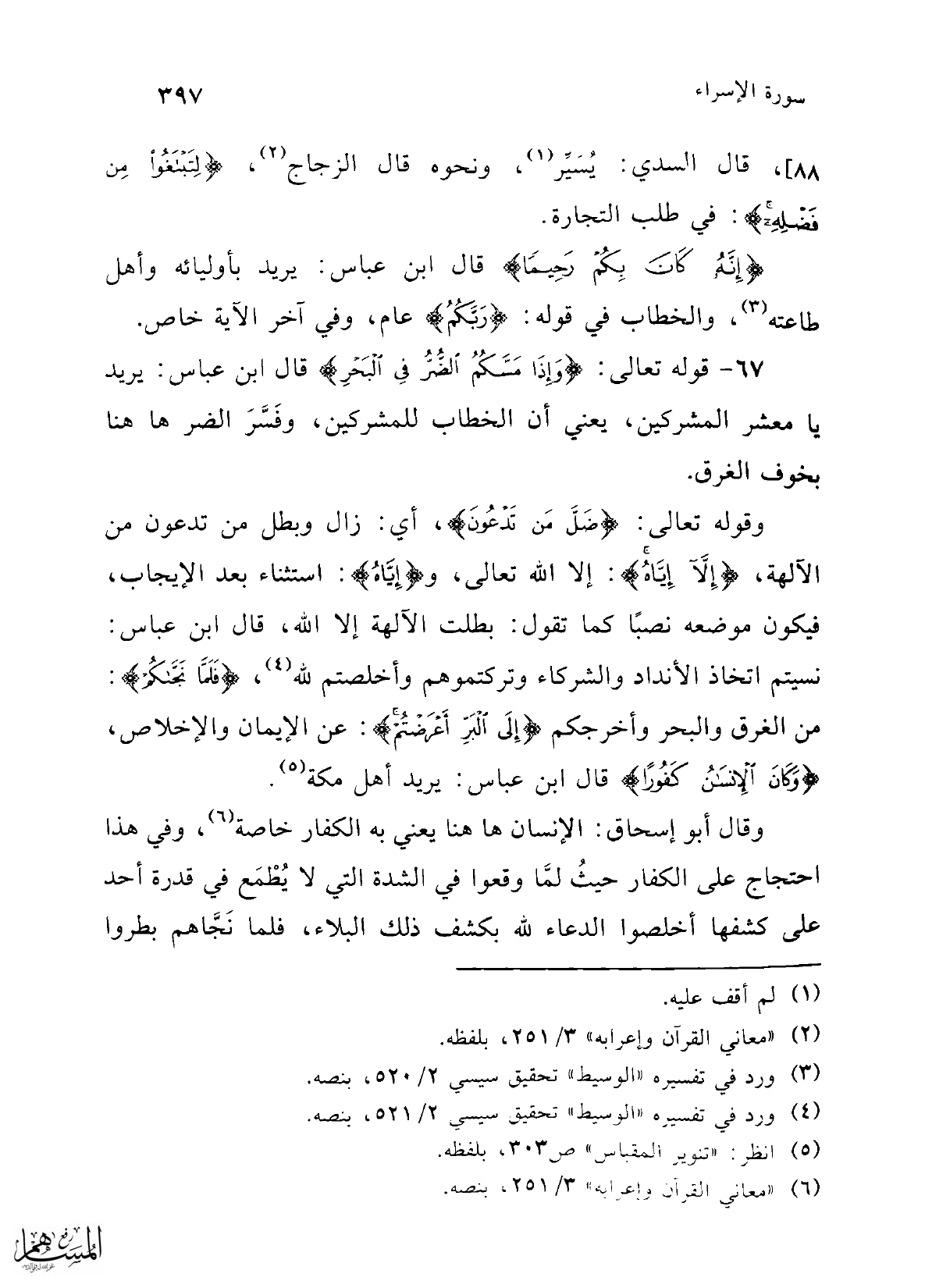(¬6) "معاني القرآن وإعرابه" 3/ 251، بنصه.