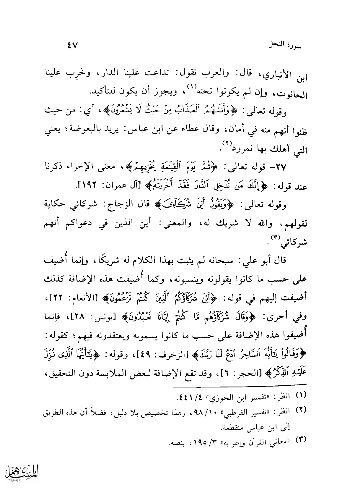 (¬3) "معاني القرآن وإعرابه" 3/ 195، بنصه.