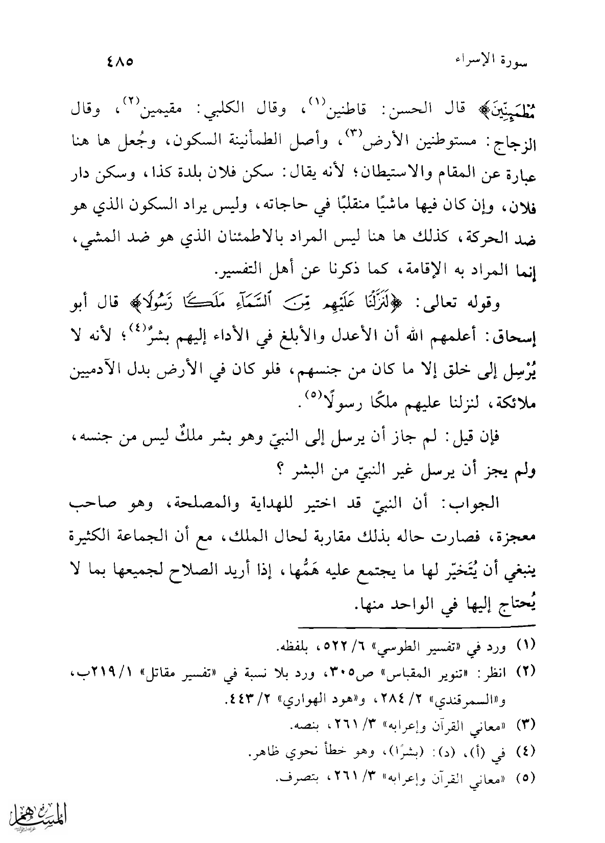 (¬5) "معاني القرآن وإعرابه" 3/ 261 بتصرف.