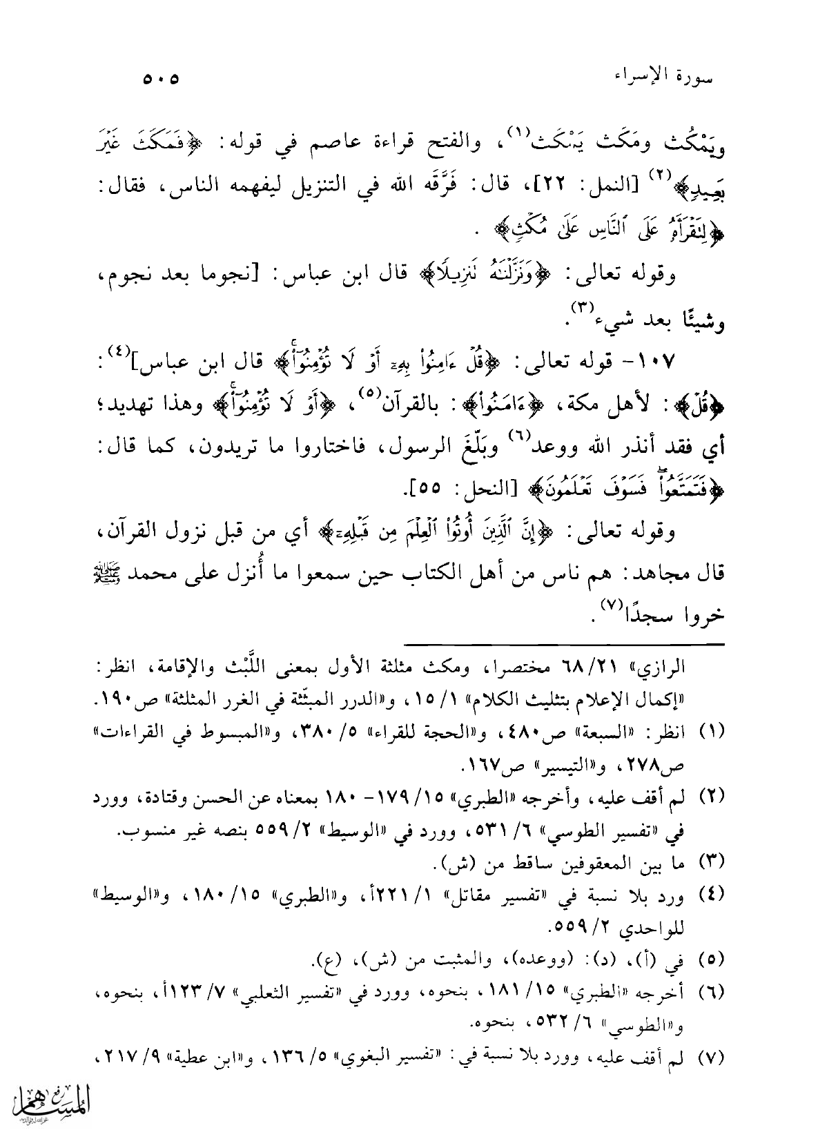(¬7) أخرجه "الطبري" 15/ 181, بنحوه، وورد في "تفسير الثعلبي" 7/ 123 أ، بنحوه، و"الطوسي" 6/ 532، بنحوه.