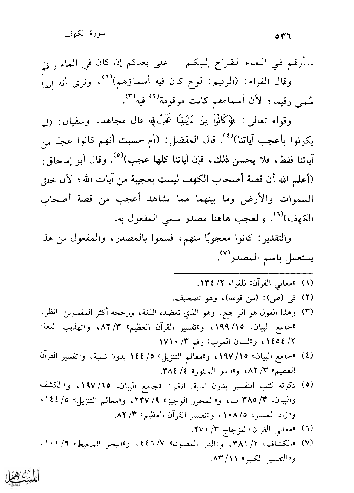 (¬7) "الكشاف" 2/ 381، و"الدر المصون" 7/ 446، و"البحر المحيط" 6/ 101، و"التفسير الكبير" 11/ 83.